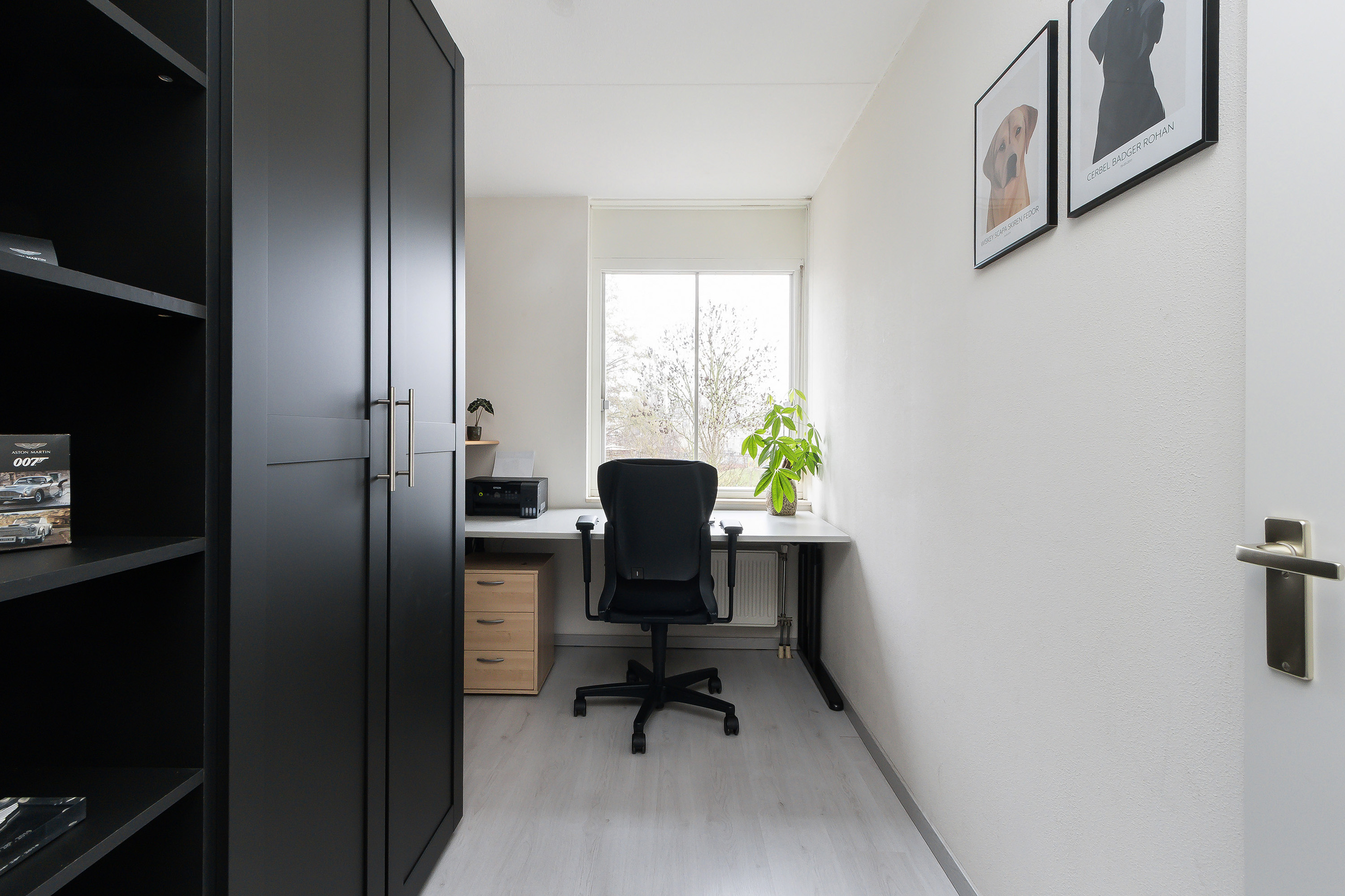 - Slaapkamer 2 (ca. 13 m²), gelegen aan de voorzijde (fungeert momenteel als hobbykamer);