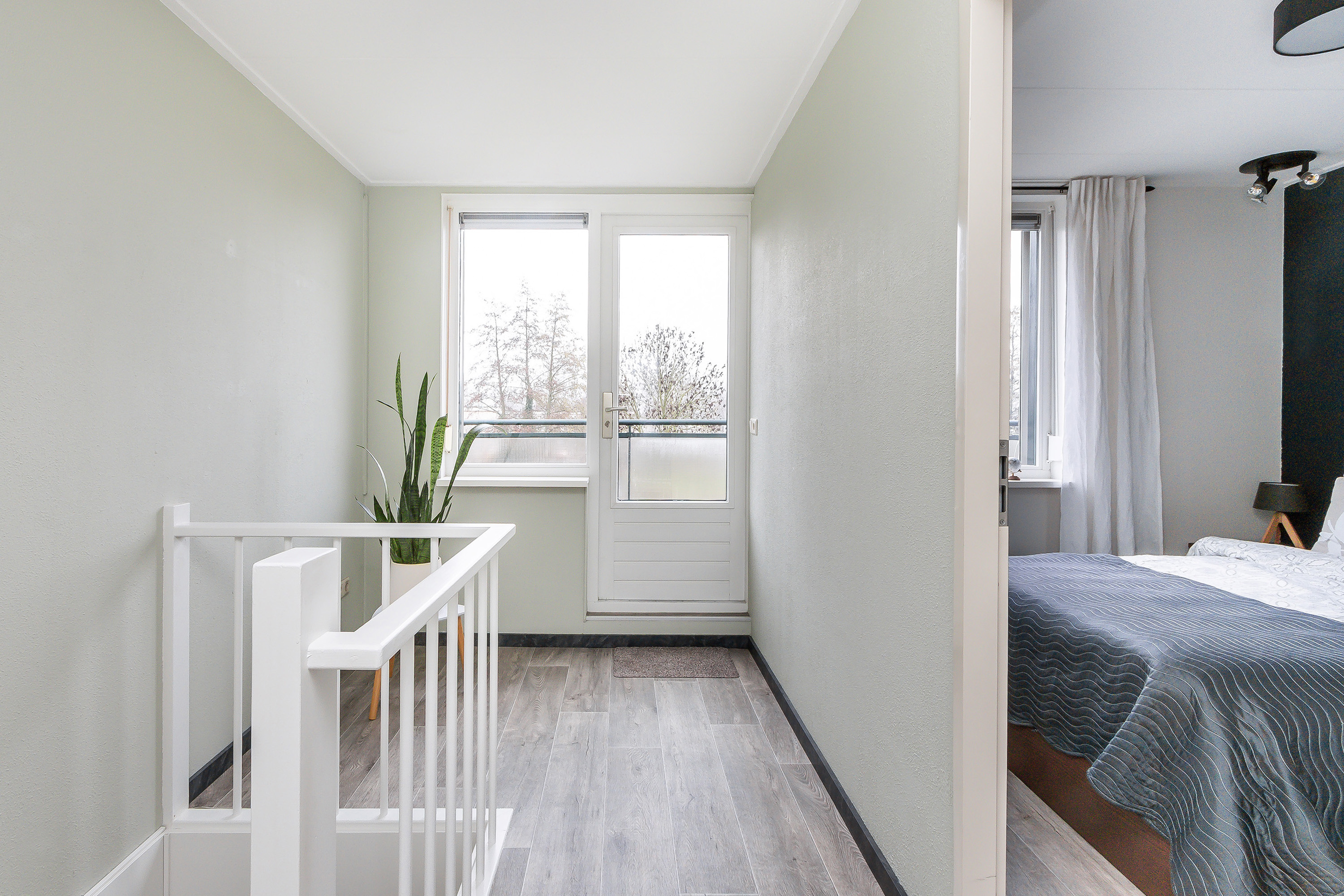 - Tweede verdieping: spachtelputz wandafwerking. Laminaat vloerafwerking.