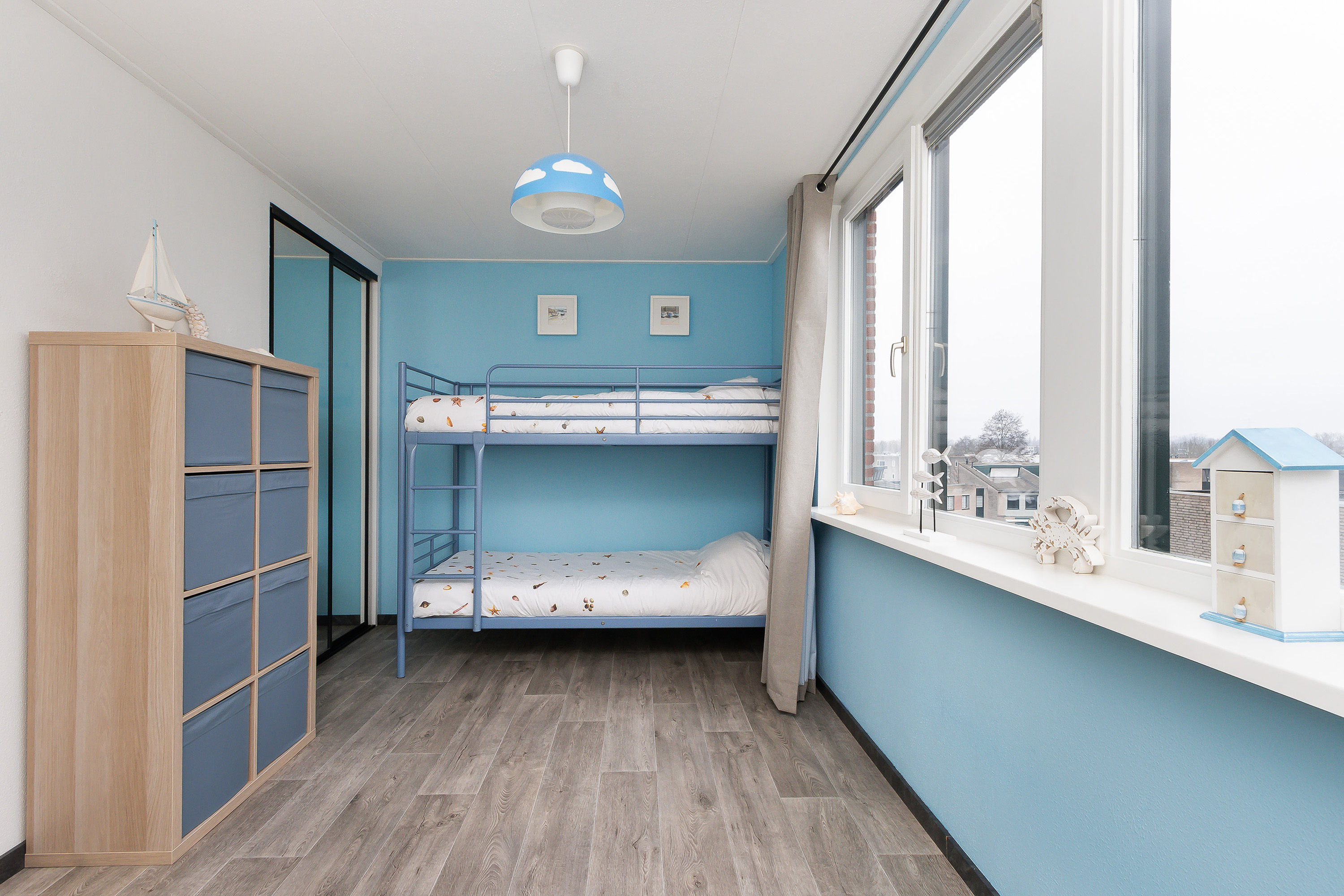 - Slaapkamer 1 (ca. 13 m²), gelegen aan de achterzijde en voorzien van inbouwkasten.