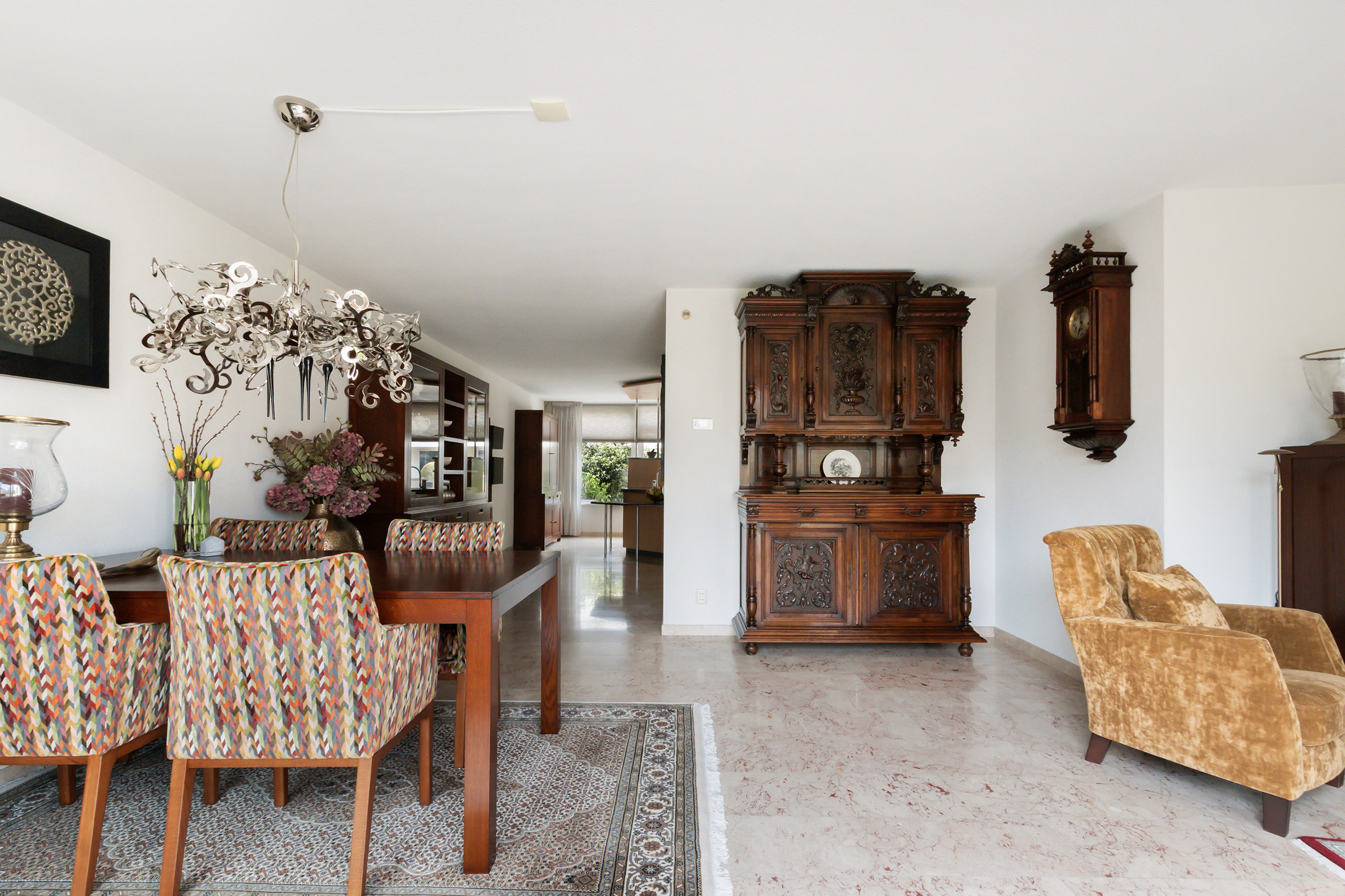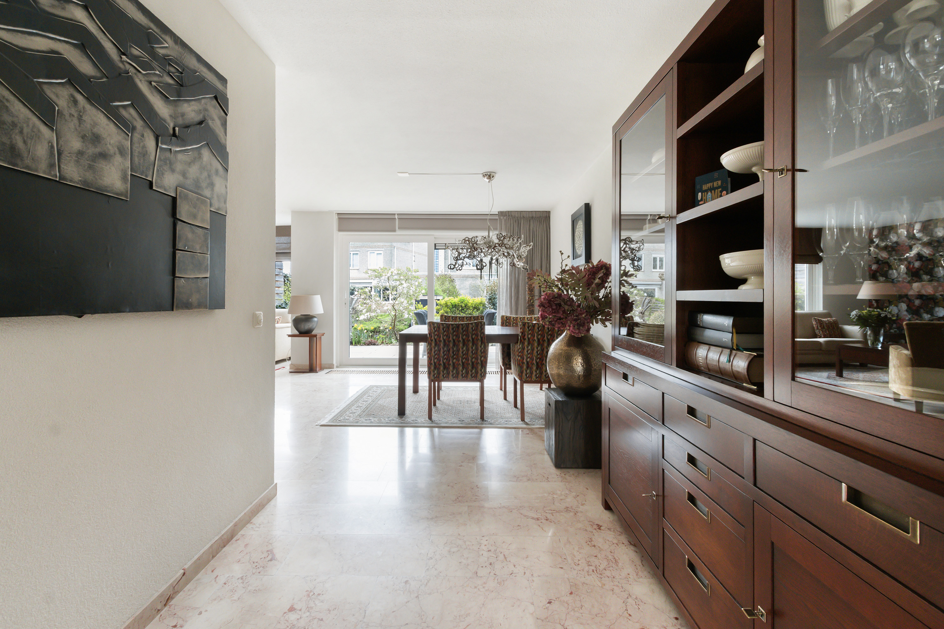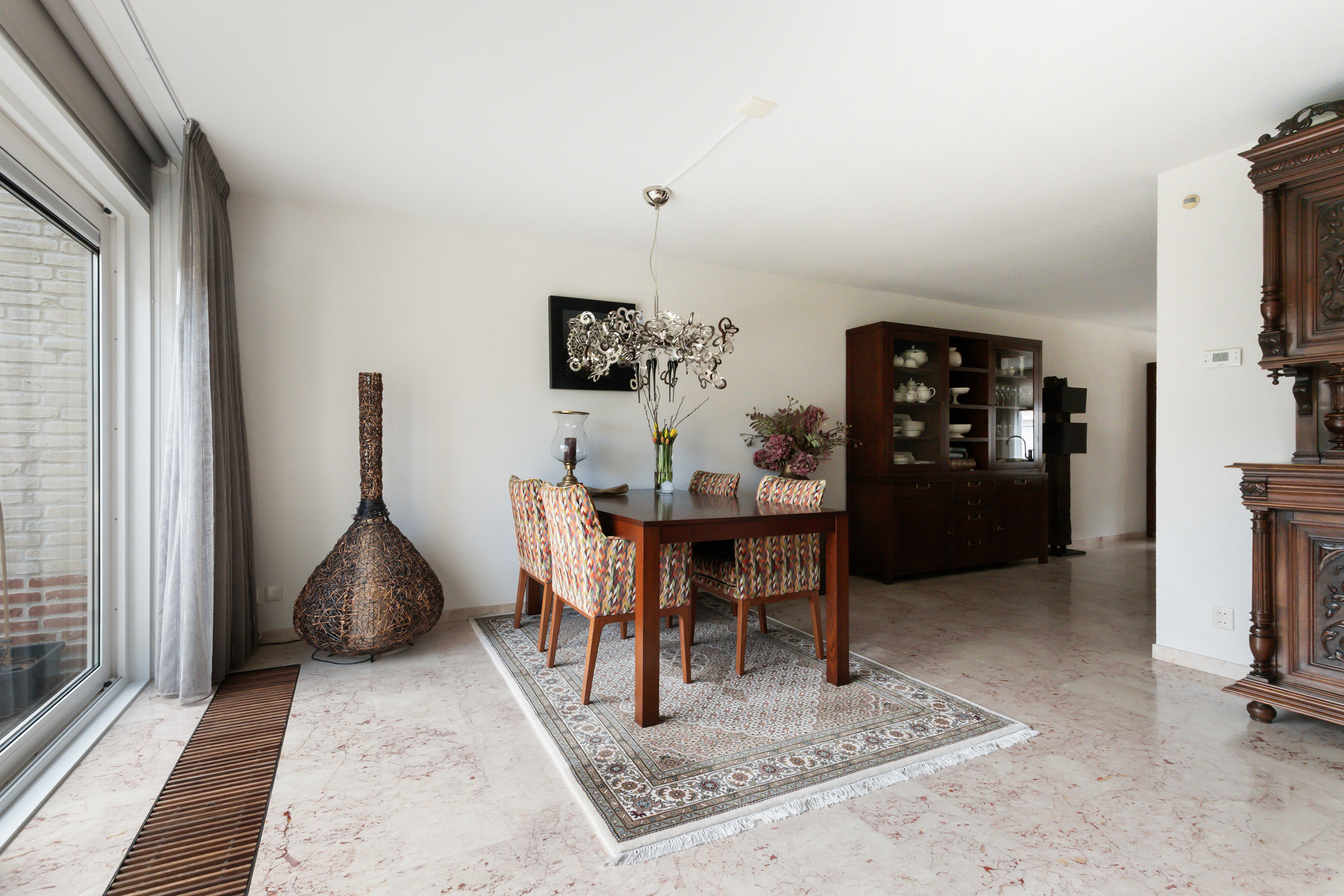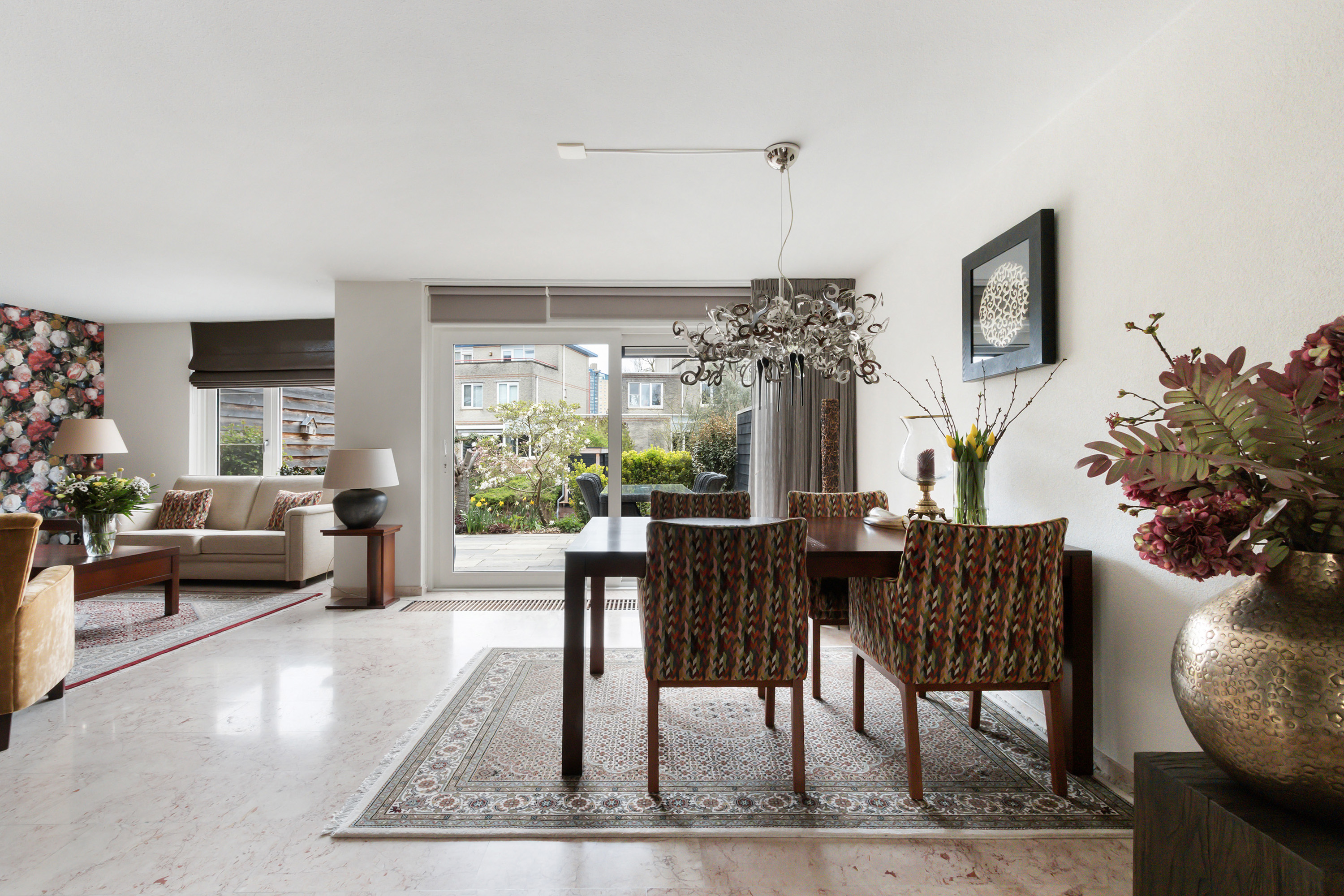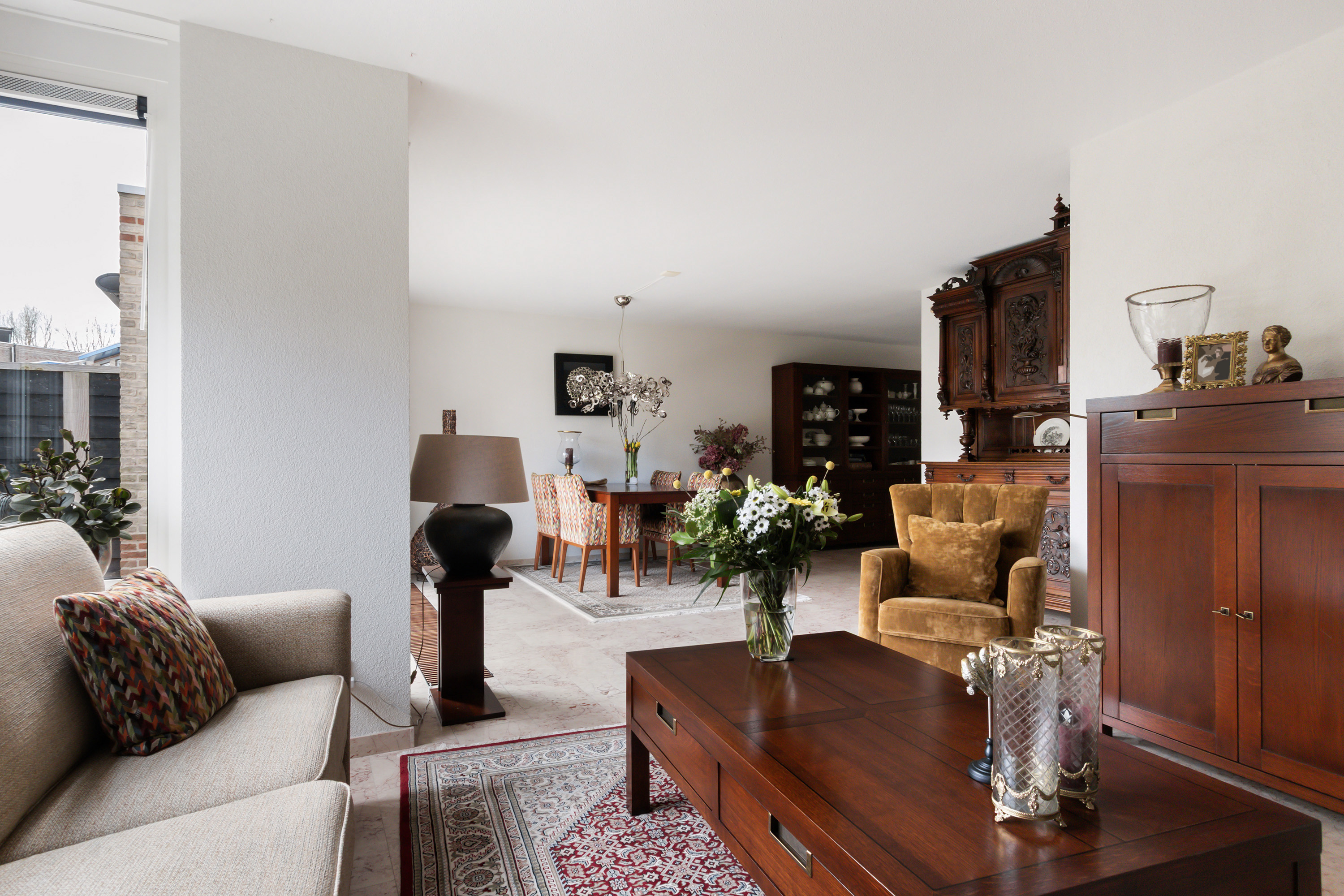 Bij binnenkomst valt meteen de fijne lichtinval in de woonkamer op. De schuifpui en grote raampartijen zorgen voor een open en lichte sfeer. Dankzij de royale breedte is er alle ruimte voor zowel een ruime eethoek als een comfortabele zithoek. De open keuken sluit hier naadloos op aan en versterkt het ruimtelijke gevoel.