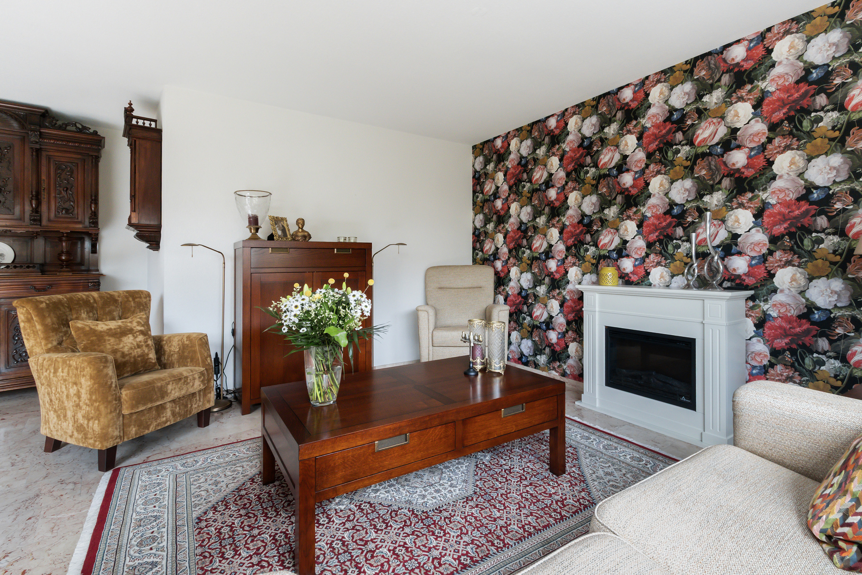 - Tuingerichte woonkamer met veel natuurlijke lichtinval, voorzien van een sfeervolle elektrische haard, 2-groeps (bij)vloerverwarming, een elektrisch uitvalscherm en elektrische screens aan de achterzijde en een kunststof schuifpui naar de achtertuin;