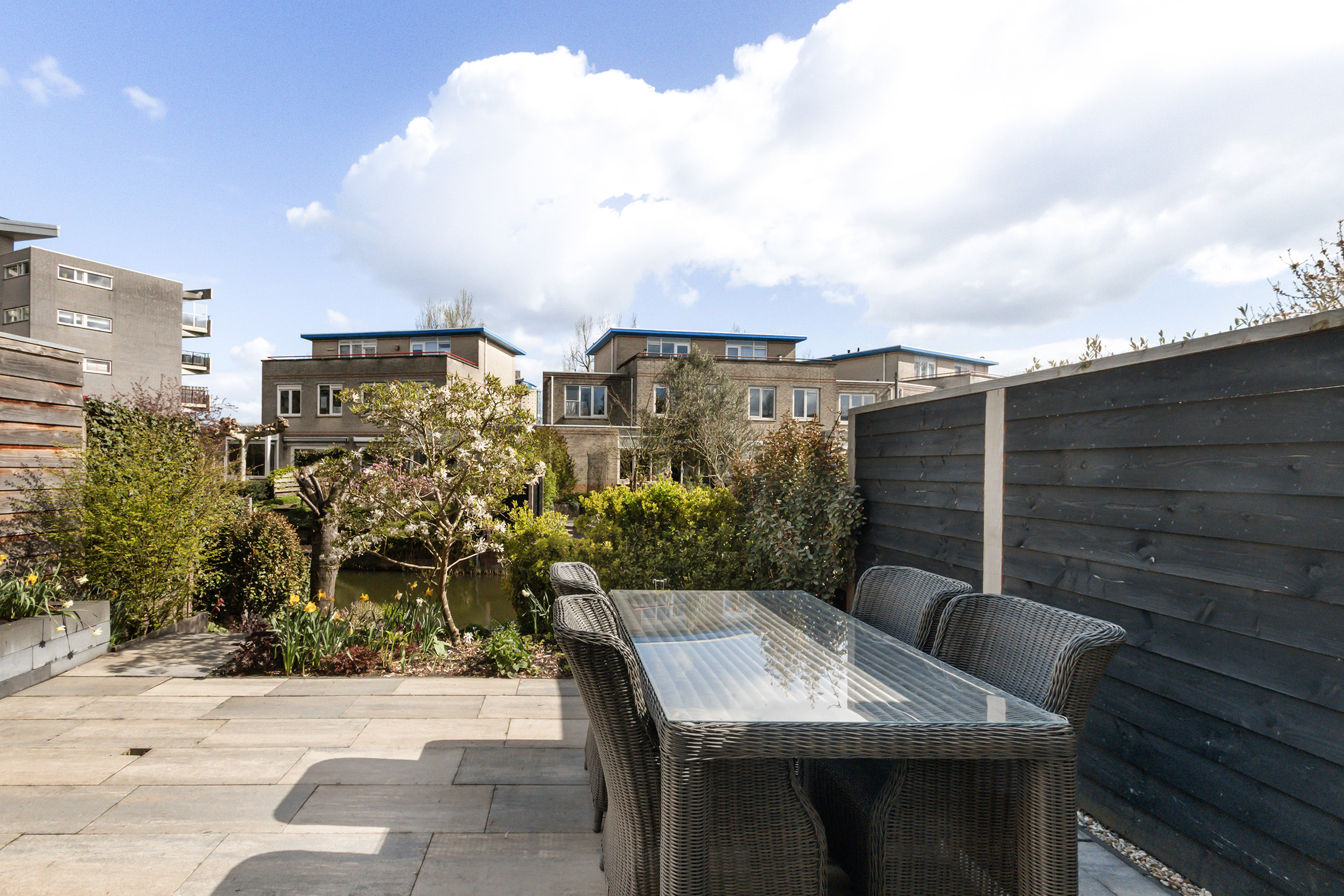 De achtertuin is een heerlijke plek om te ontspannen. Gelegen op het zuidoosten en direct aan het water, geniet u hier van veel zon en privacy. De tuin is verzorgd aangelegd met een terras, groenborders en een vlonder aan het water. Door het speelse niveauverschil heeft de tuin een eigen karakter en biedt het meerdere fijne zitplekken.