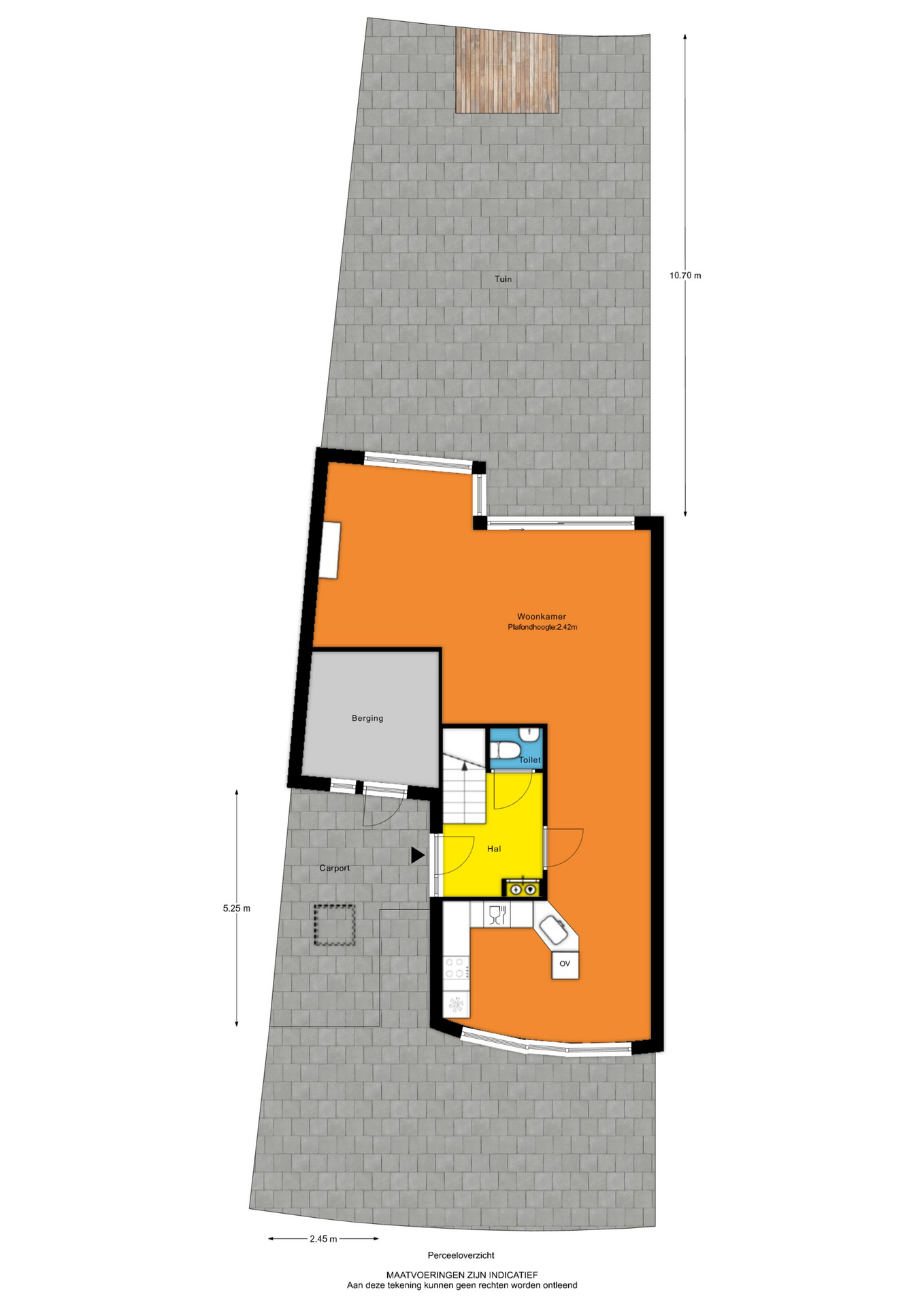 De vermelde afmetingen/ oppervlakten in deze informatie zijn gemeten op basis van de BBMI (Branche Brede Meetinstructie). De meetinstructie is bedoeld om een meer eenduidige manier van meten toe te passen voor het geven van een indicatie van de gebruiksoppervlakte. De meetinstructie sluit verschillen in meetuitkomsten niet volledig uit, door bijvoorbeeld interpretatieverschillen, afrondingen of beperkingen bij het uitvoeren van de meting.