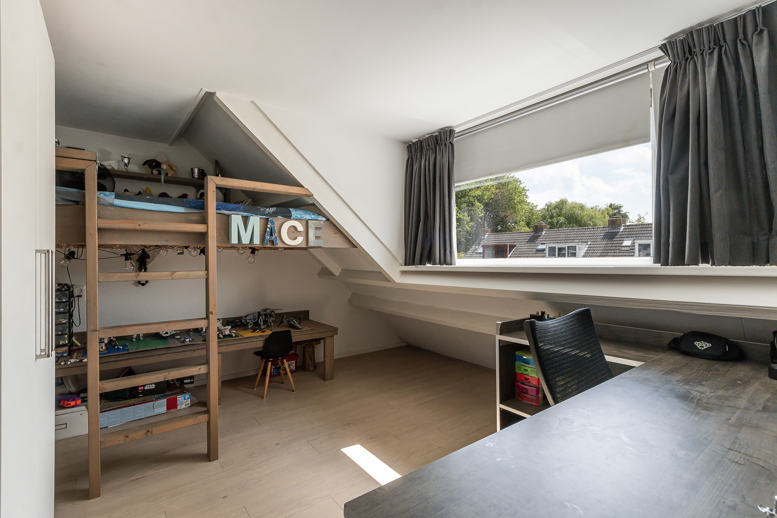 - Slaapkamer 4, gelegen aan de voorzijde met 2 dakvensters (2019), luik naar bergvliering en opbergruimte achter knieschotten.