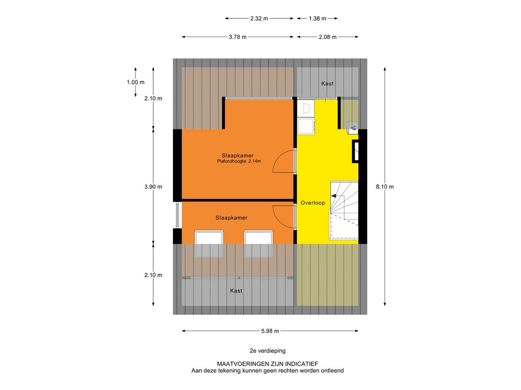 - Slaapkamer 3, gelegen aan de achterzijde met kunststof dakkapel;