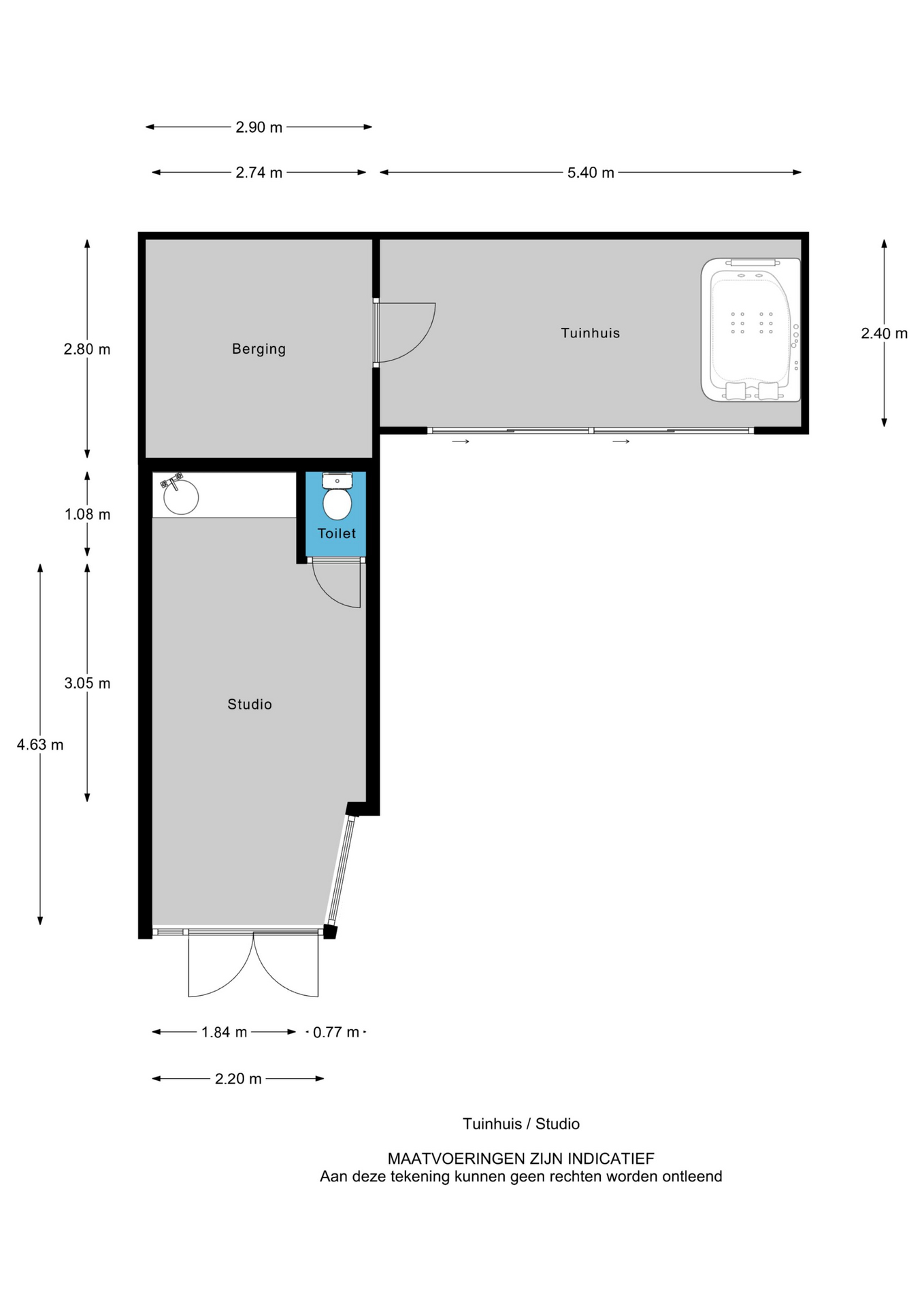 De aanwezige studioruimte maakt werken aan huis mogelijk (kantoor, atelier, praktijk, studio e.d.).