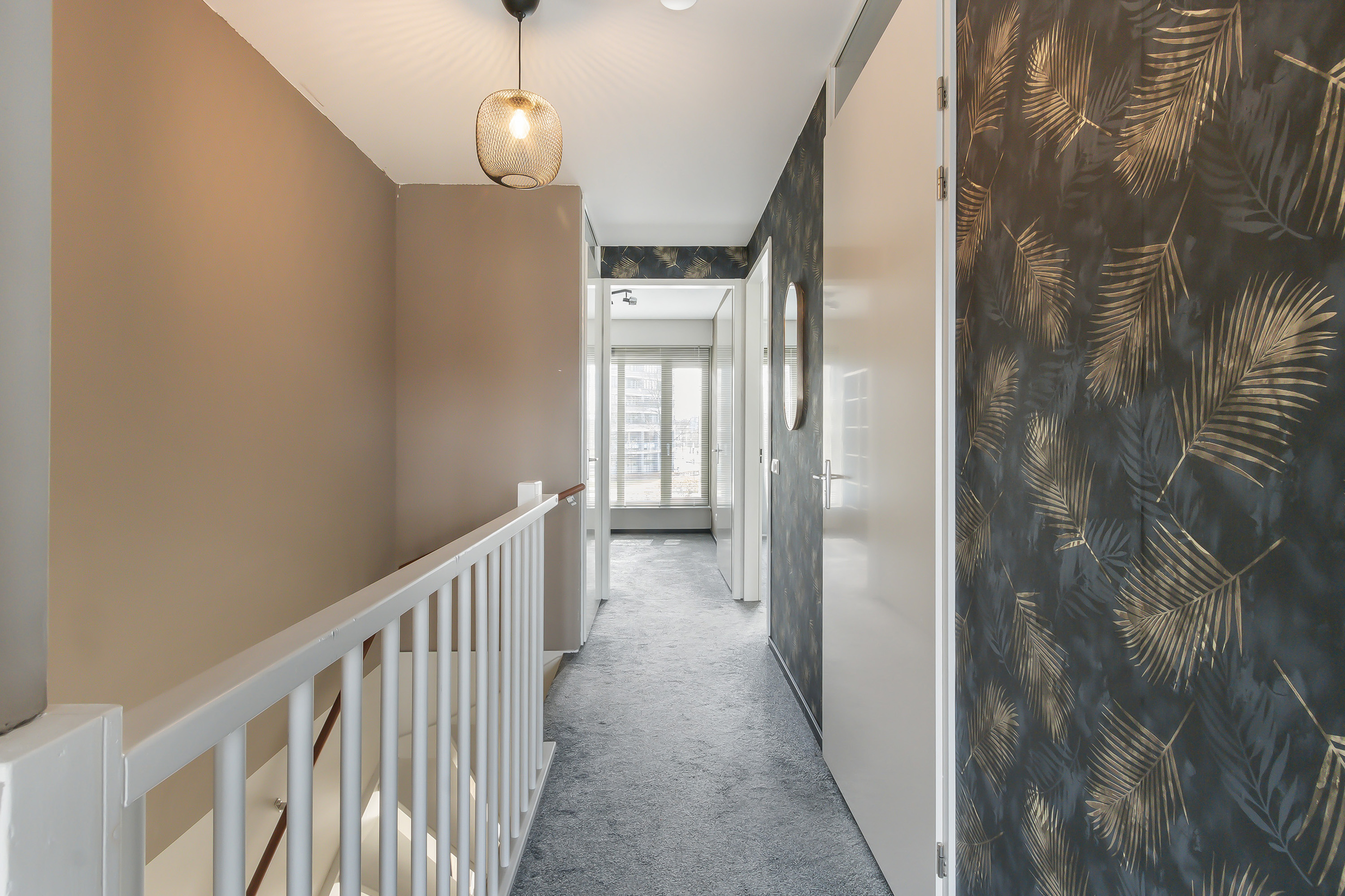 - Tweede verdieping: wandafwerking met behang en vloerafwerking met vloerbedekking;