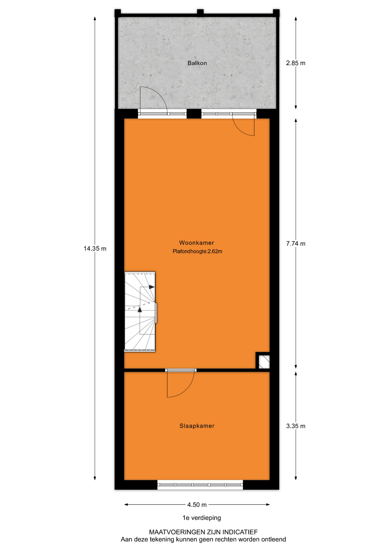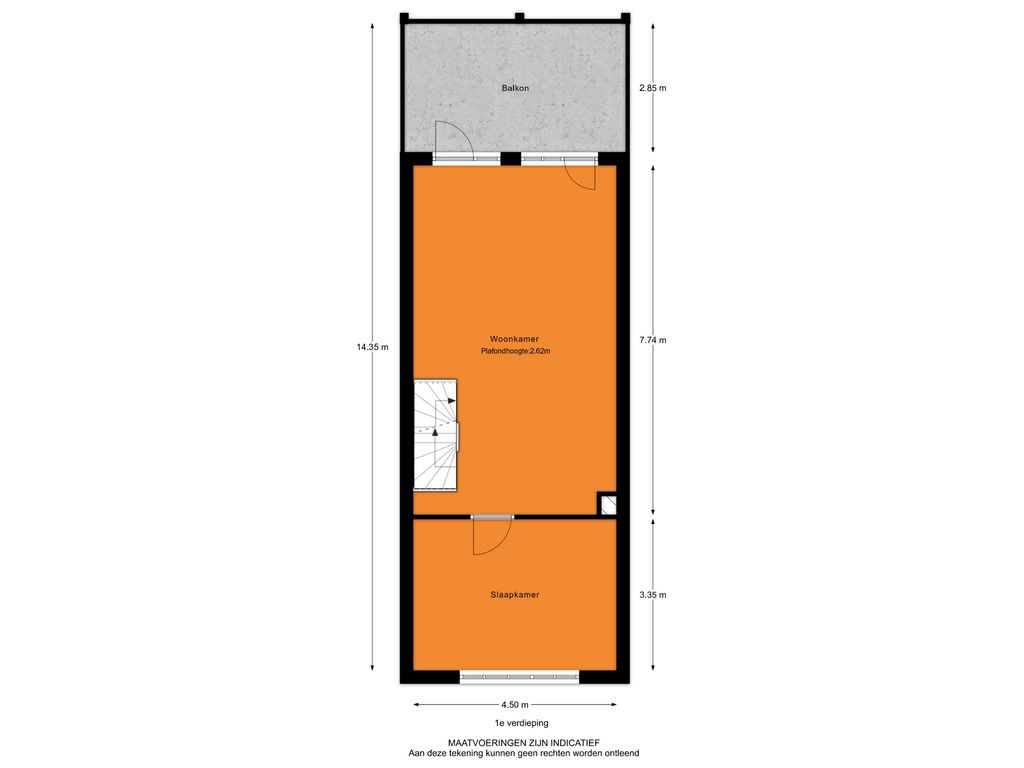 - Slaapkamer 1, 3.35 x 4.50 m.;