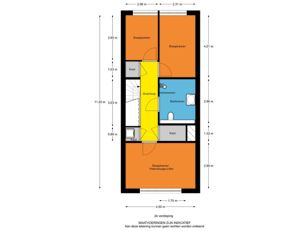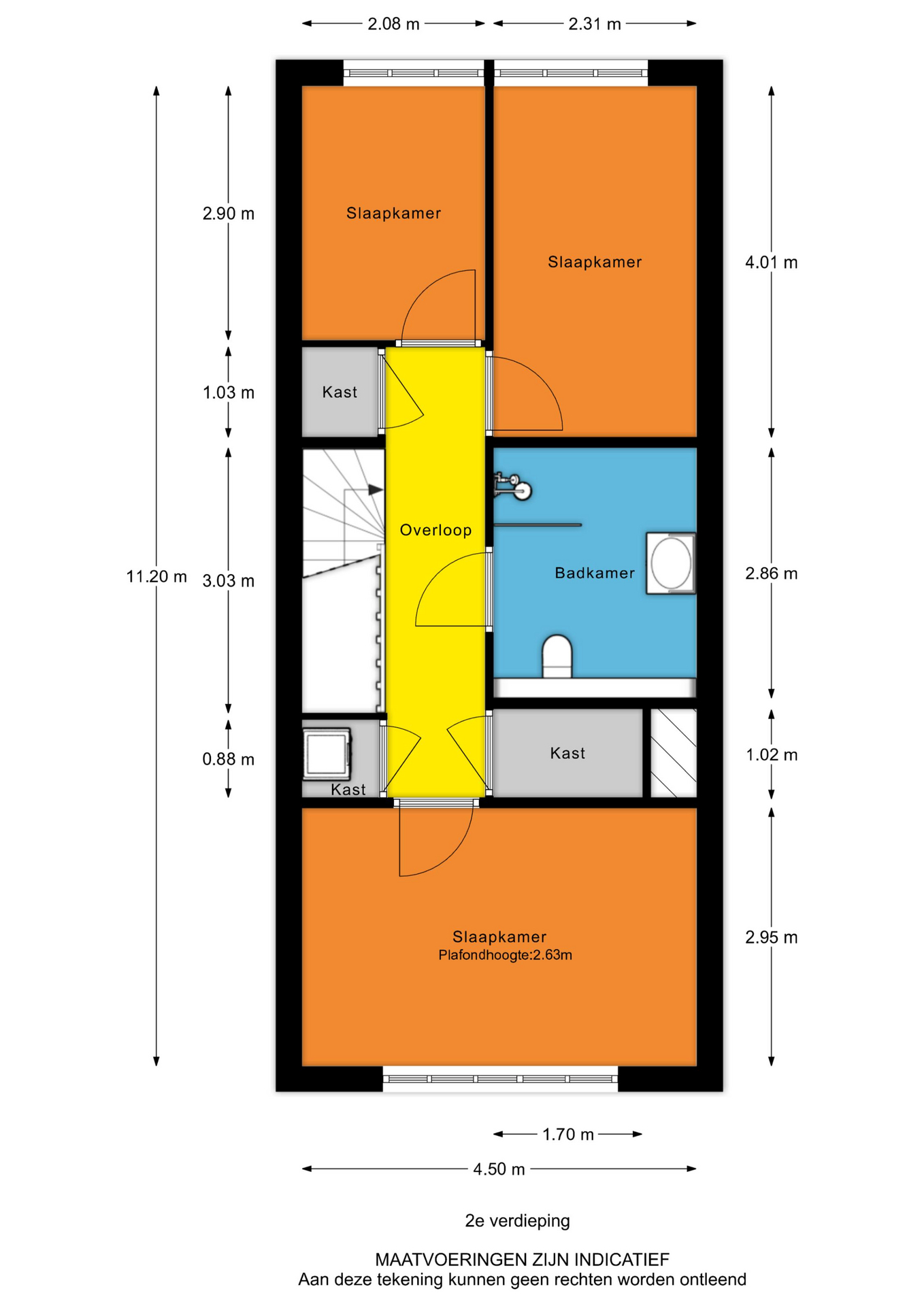 - Slaapkamer 2, gesitueerd aan de voorzijde over de volle breedte (ca 4.50 x 2.95 m).