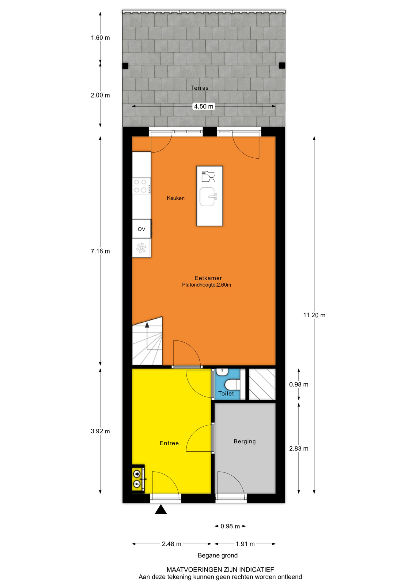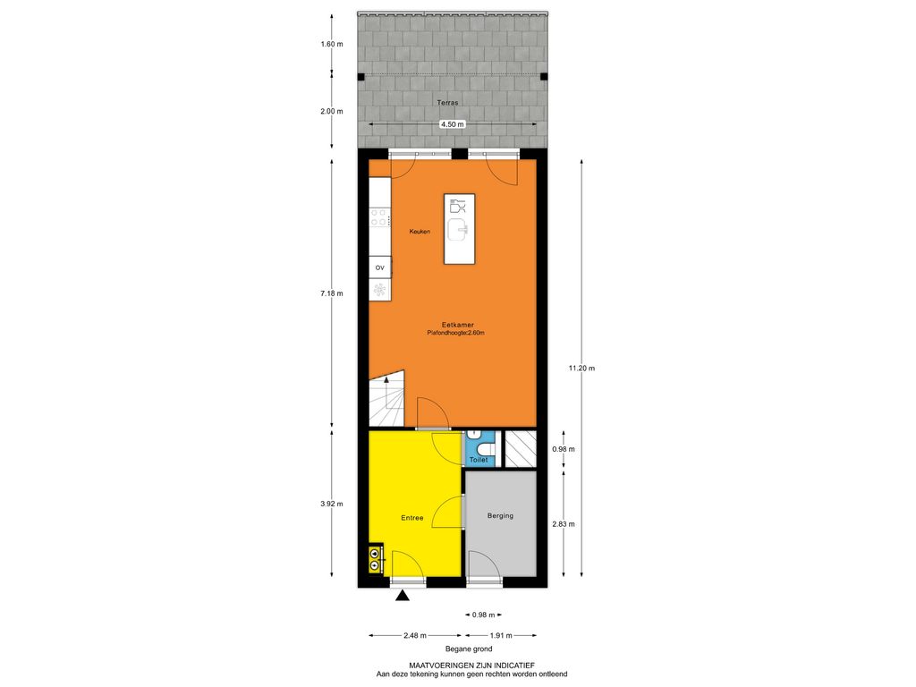 - Entree, hal, meterkast, toiletruimte en toegang tot de woonkeuken en berging;