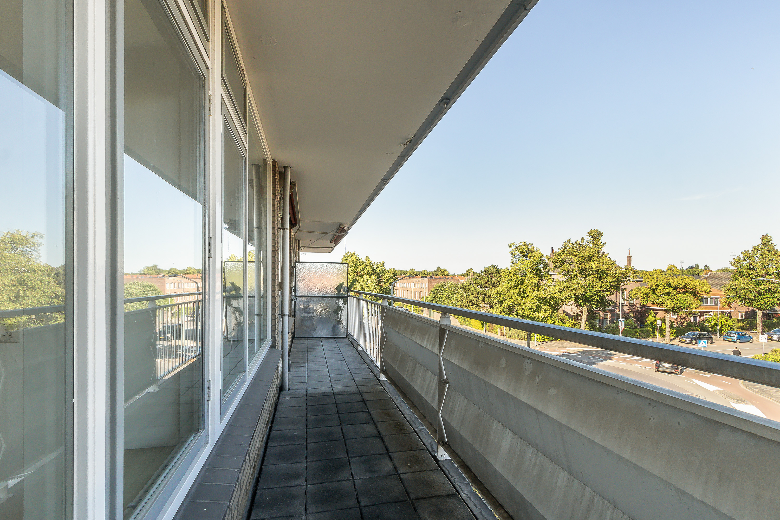 - Ruime woonkamer met een inbouwkast en toegang tot het woning brede balkon gelegen op het oosten;