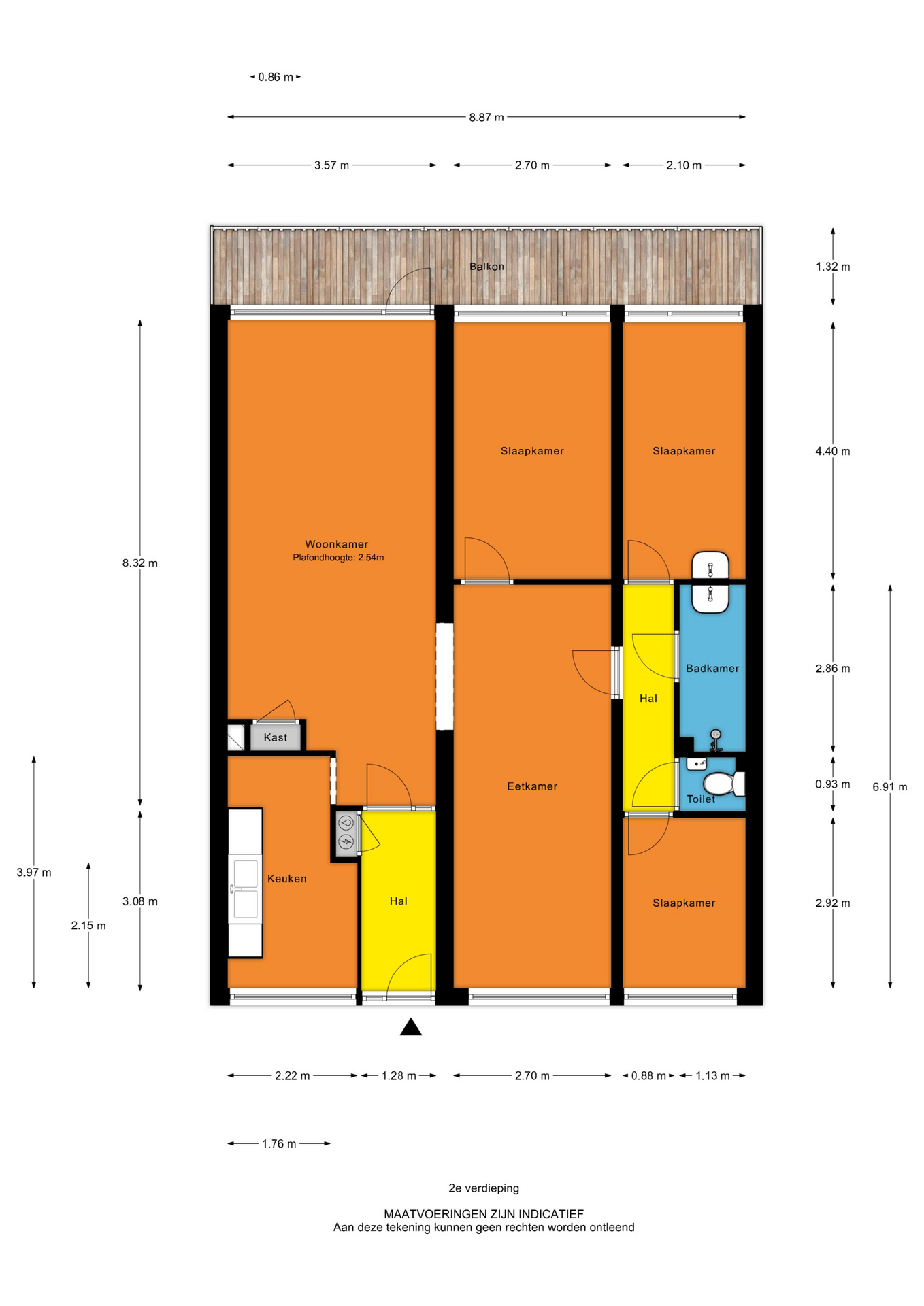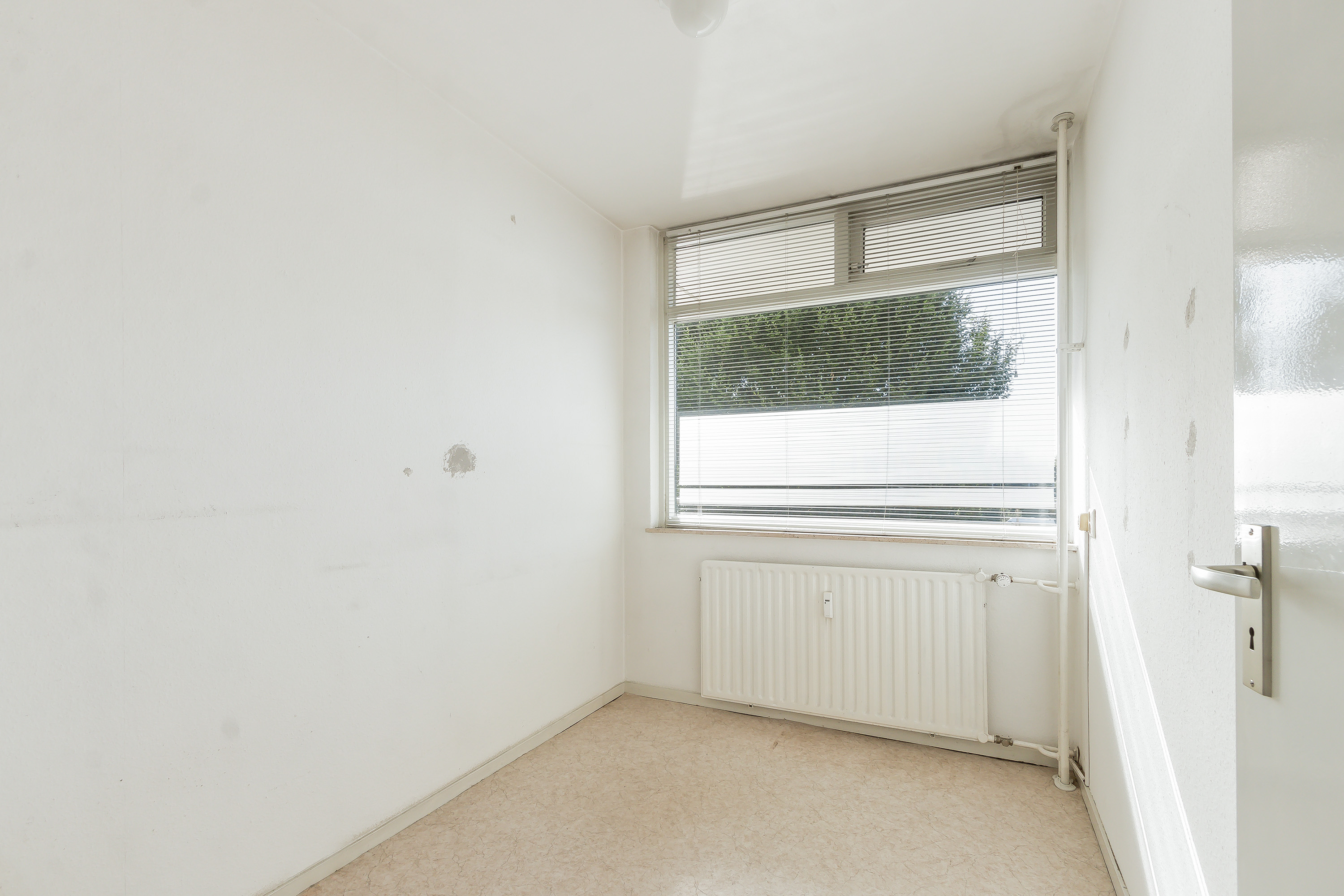 De eetkamer (desgewenst gemakkelijk tot slaapkamer te bestemmen) grenst aan de woonkamer en biedt toegang tot de 1e slaapkamer en de hal. De eetkamer brengt je bij de huidige indeling extra veel ruimte! Via de hal bereik je de andere 2 slaapkamers, het separate toilet en de badkamer.