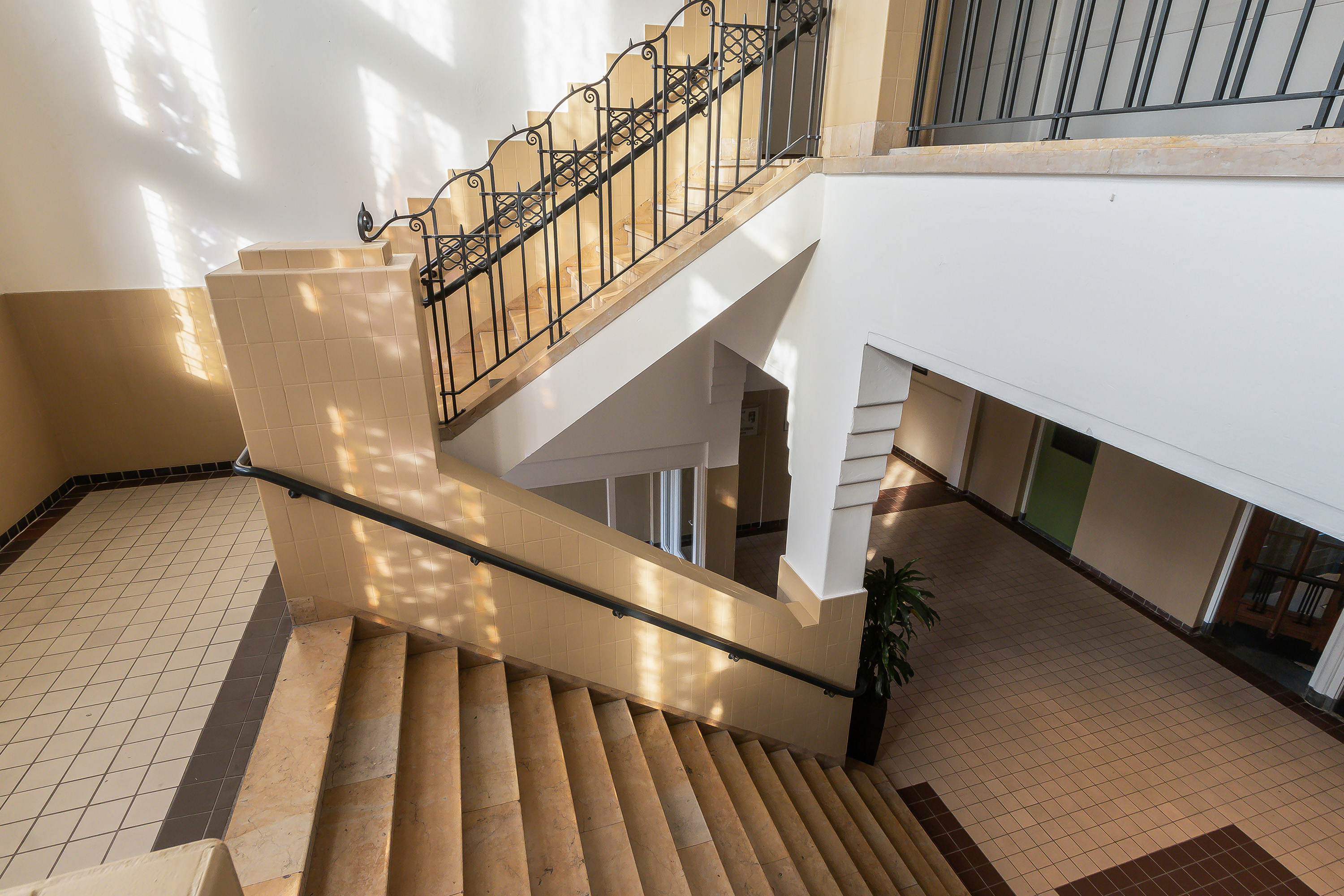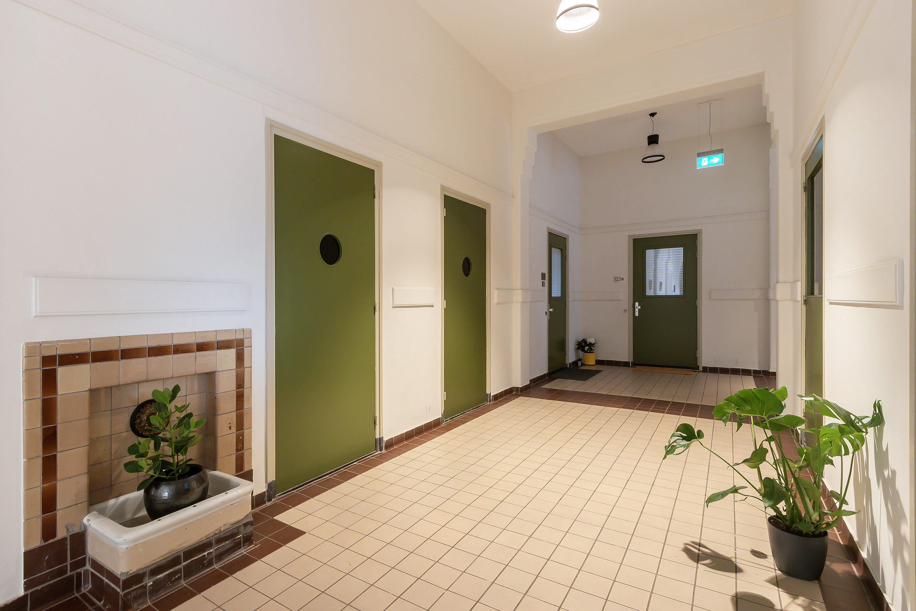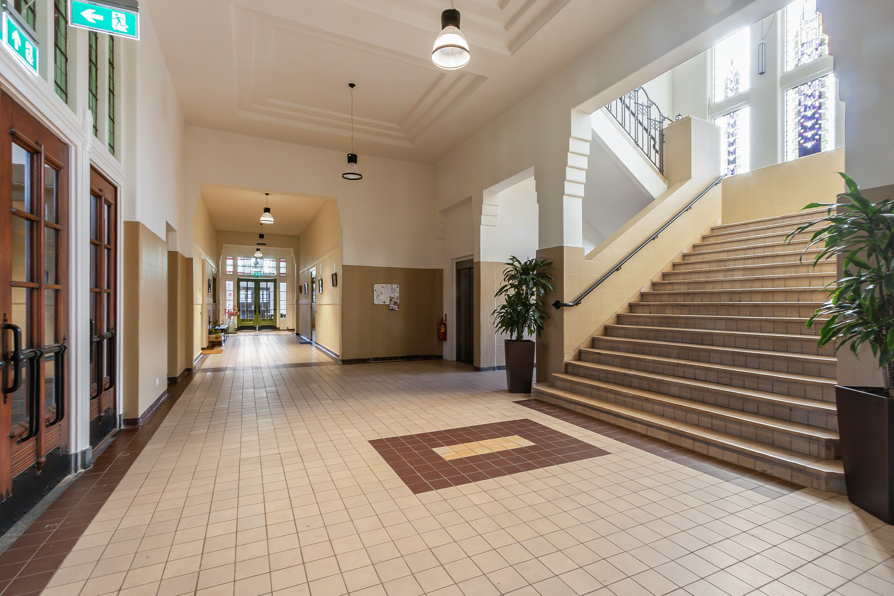 raampartijen, royaal opgezette gangen met hoge plafonds en natuurstenen vloeren