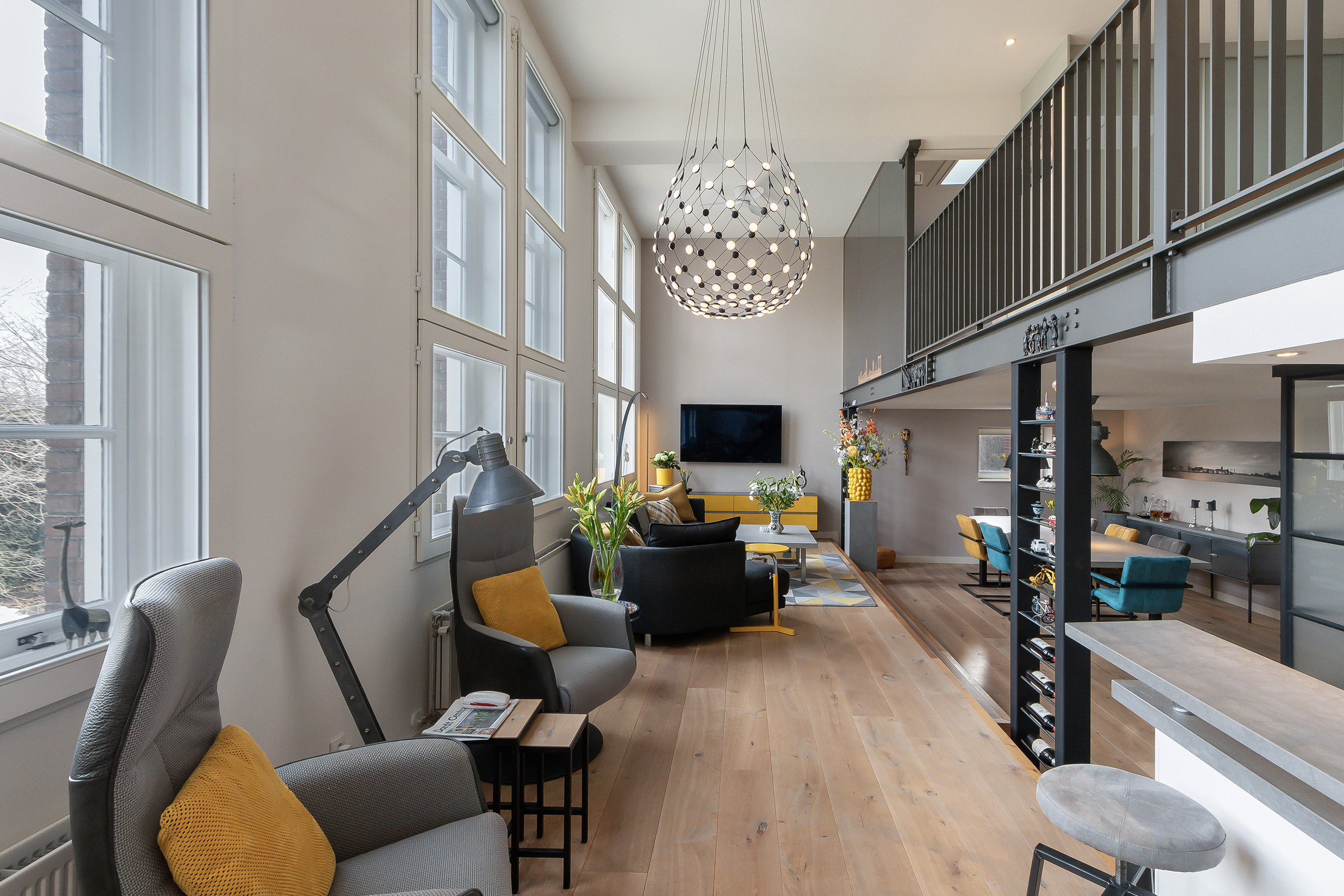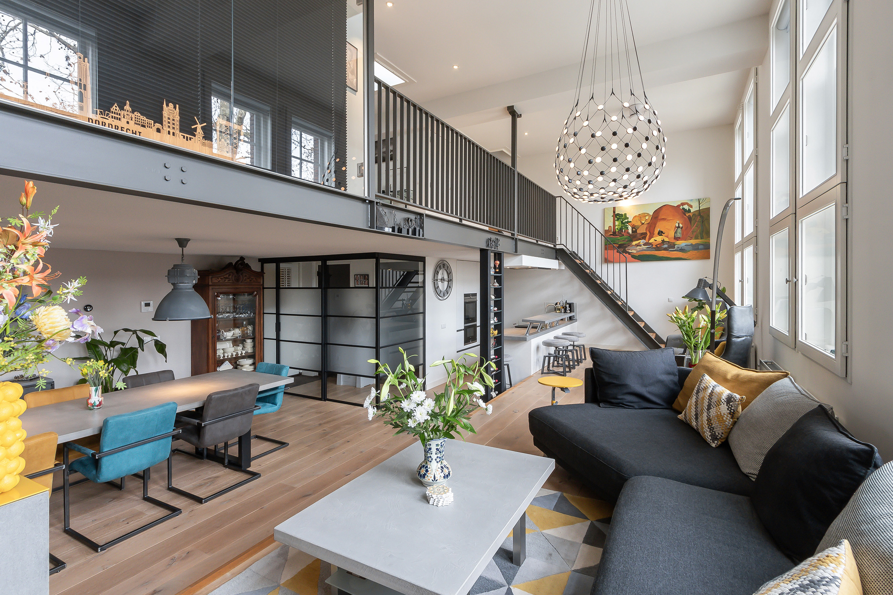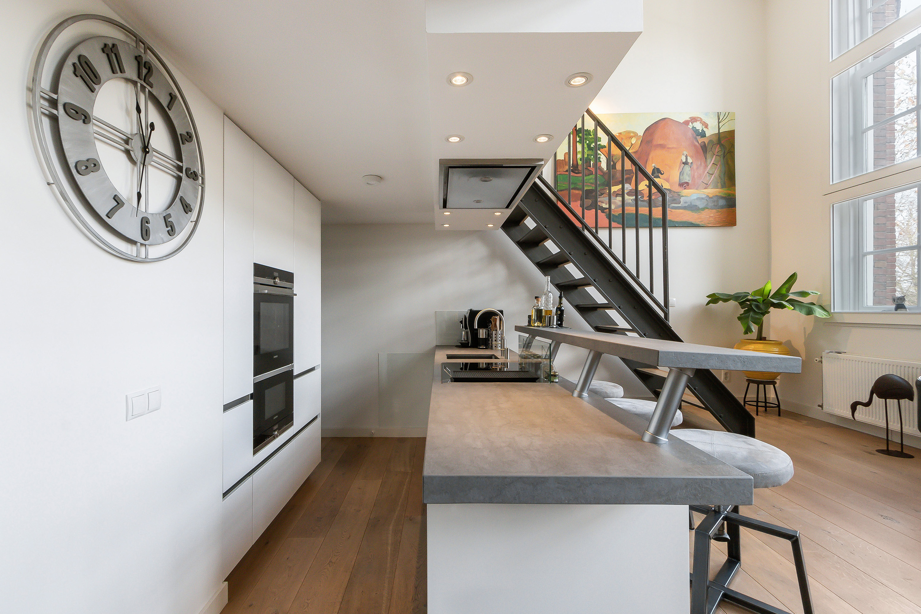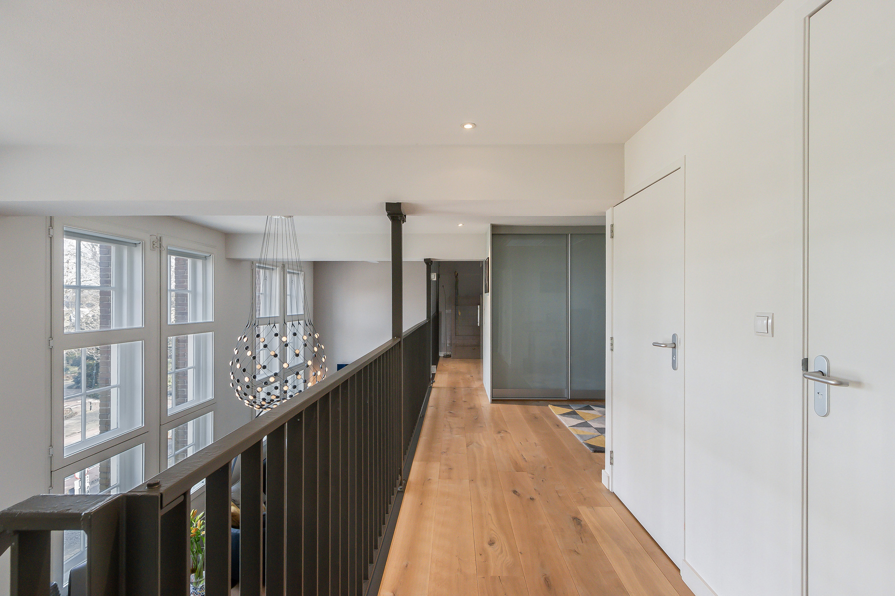 hoogte van het plafond met enorme ramen die het licht mooi door het appartement