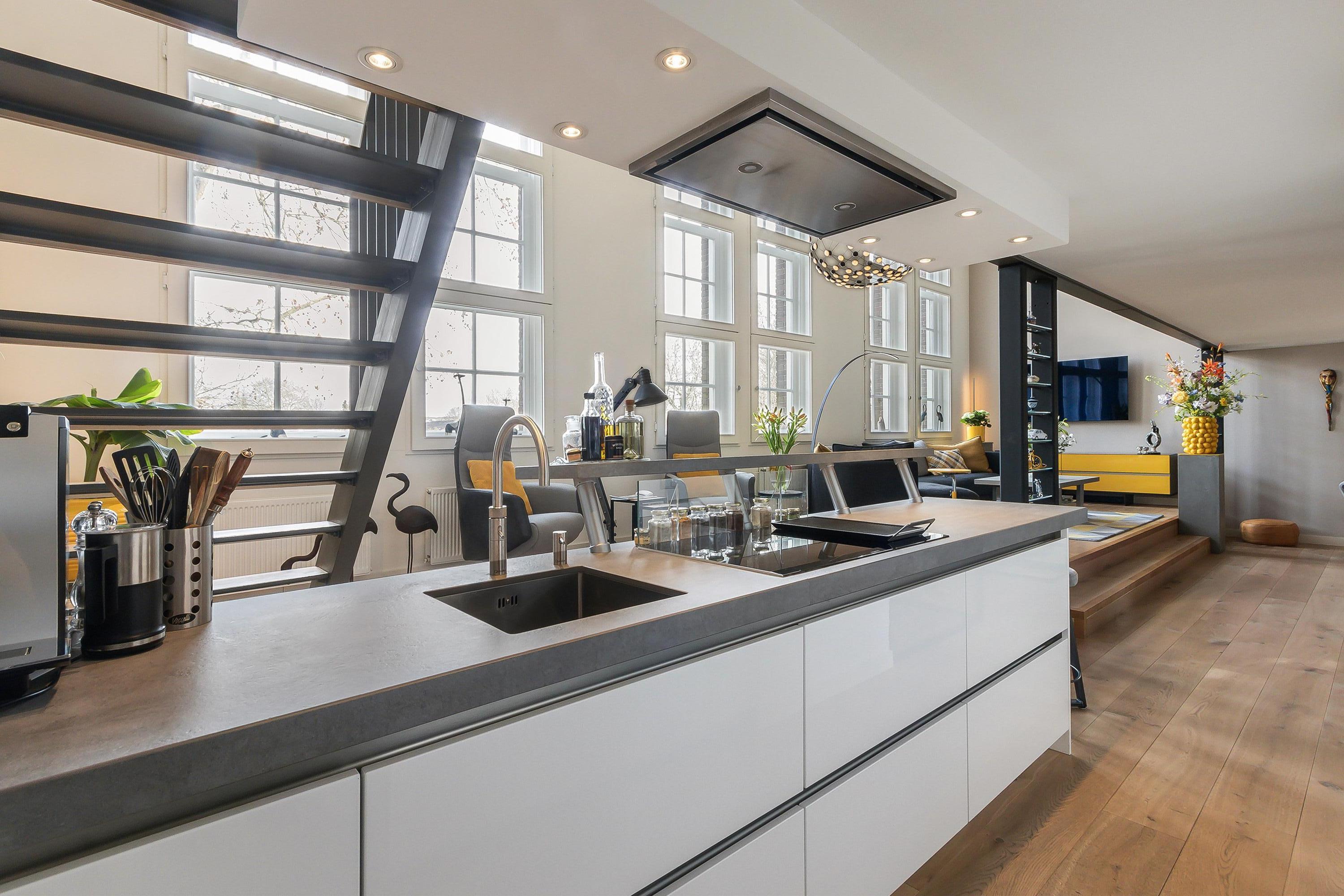 Het eerste wat opvalt bij het binnenstappen van dit bijzondere appartement is de