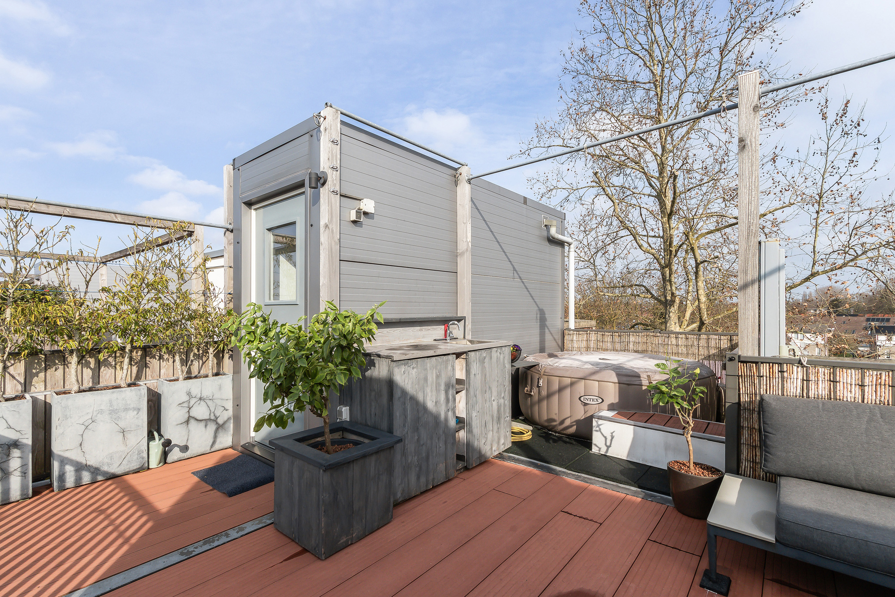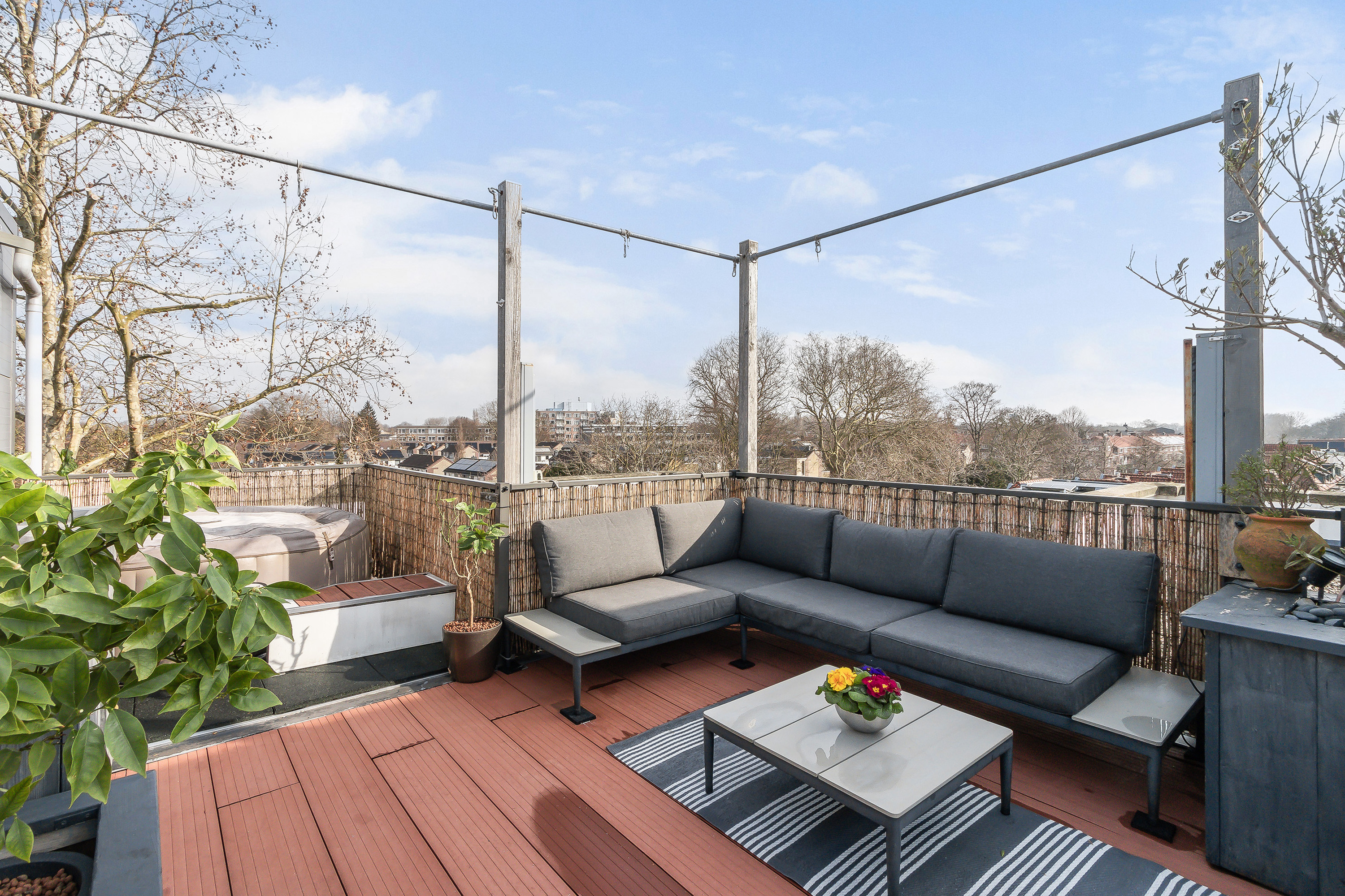 Ronduit spectaculair is het riante dakterras van ca. 25 m² met een vorstelijk