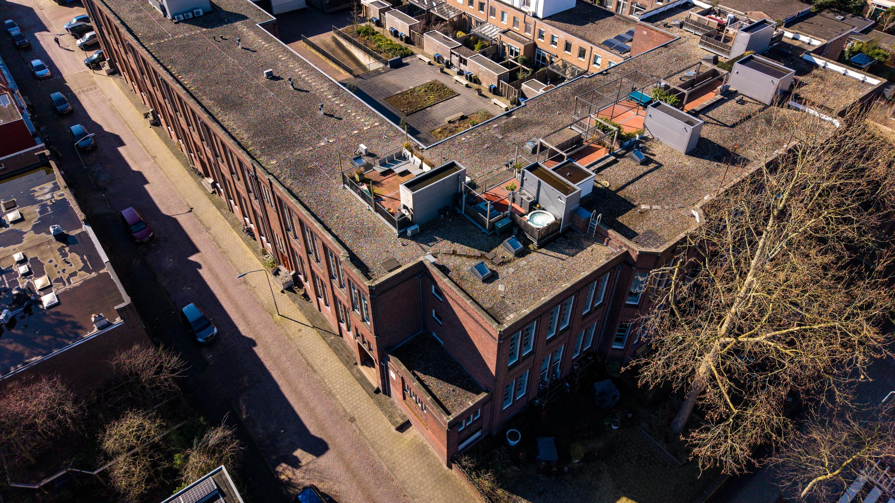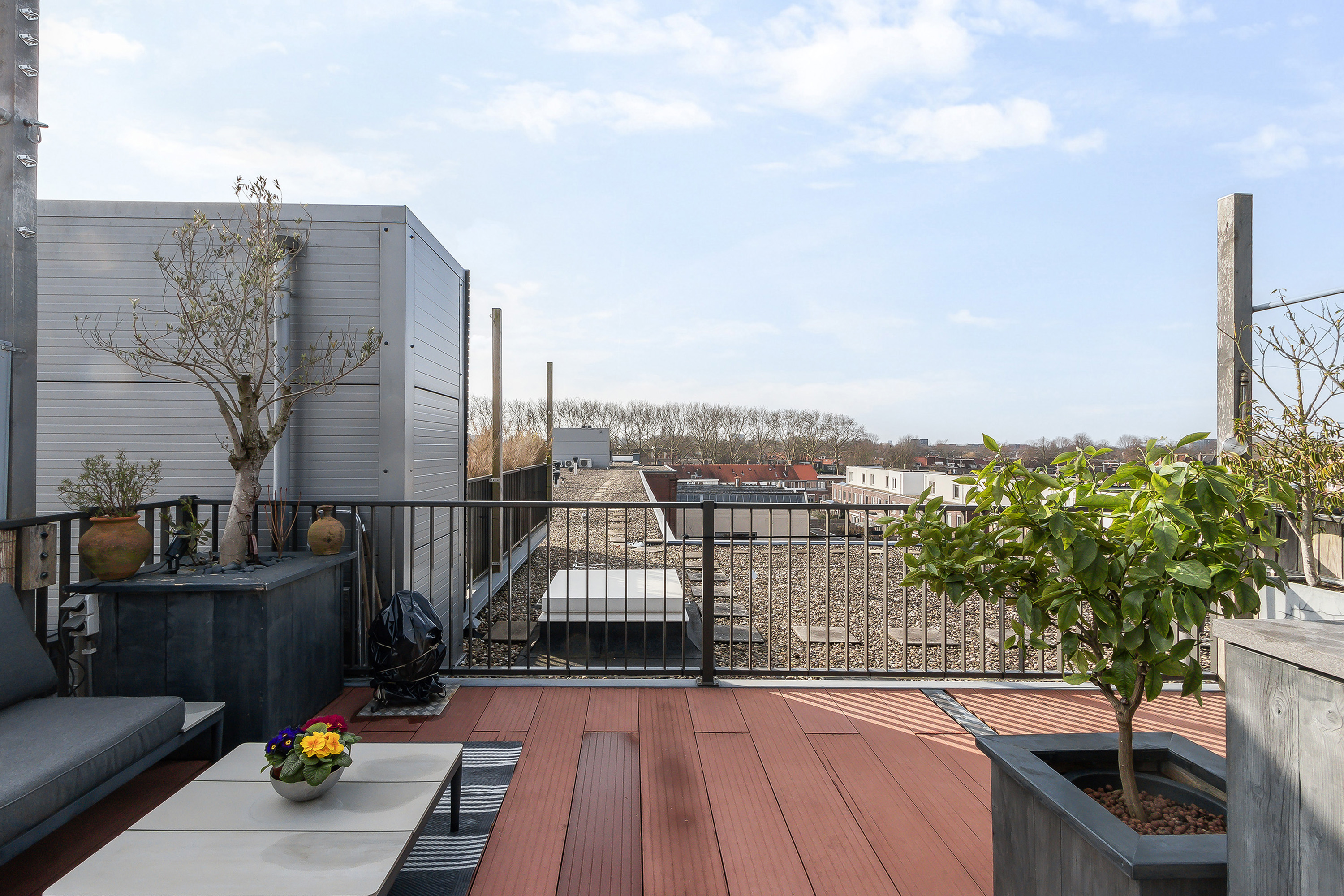 - Dakterras, opp. ca. 25 m². Spectaculair dakterras op alle windrichtingen gesitueerd (dus altijd zonnig bij goed weer). Vanaf het dakterras kijk je vorstelijk uit over Dordrecht;