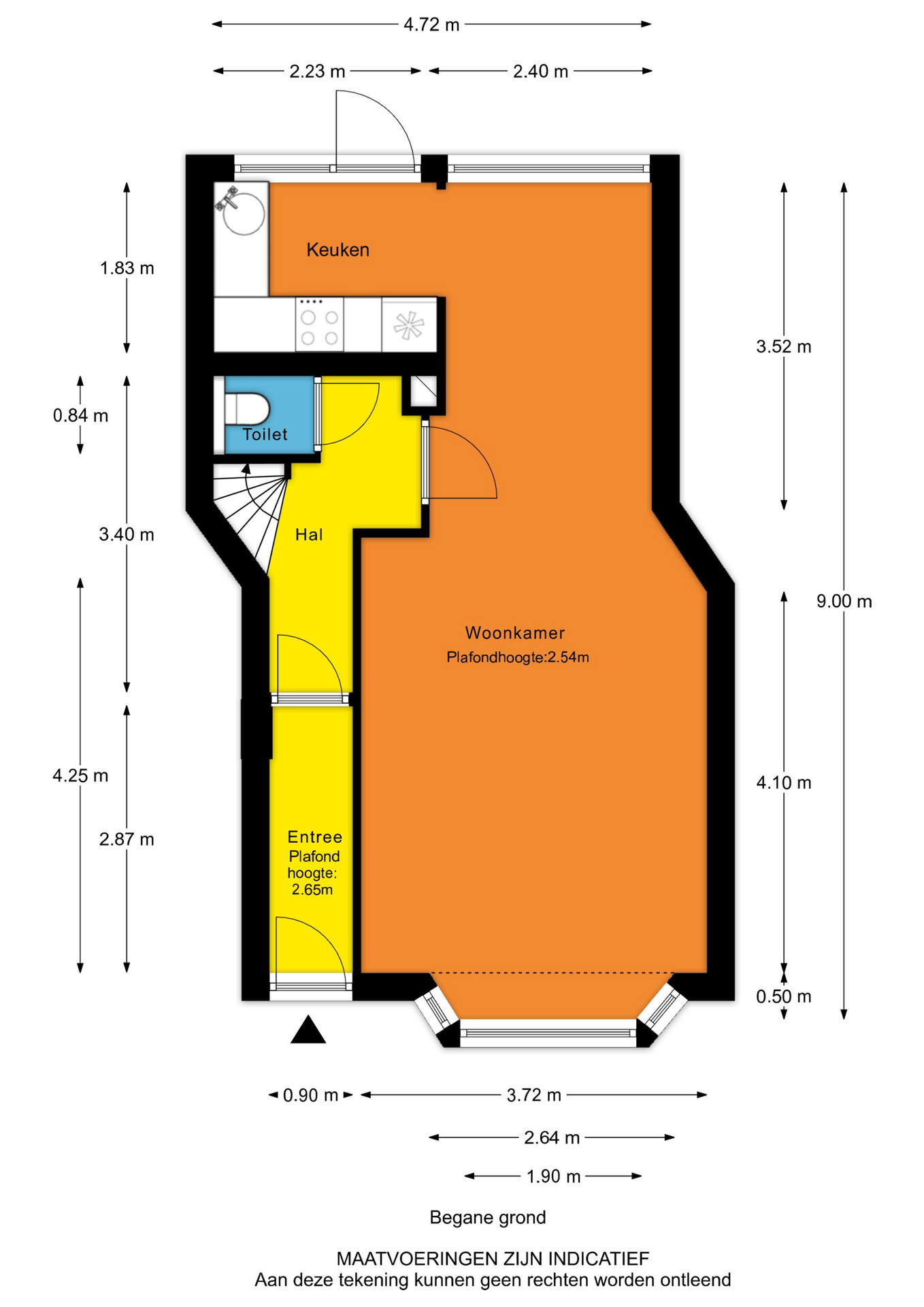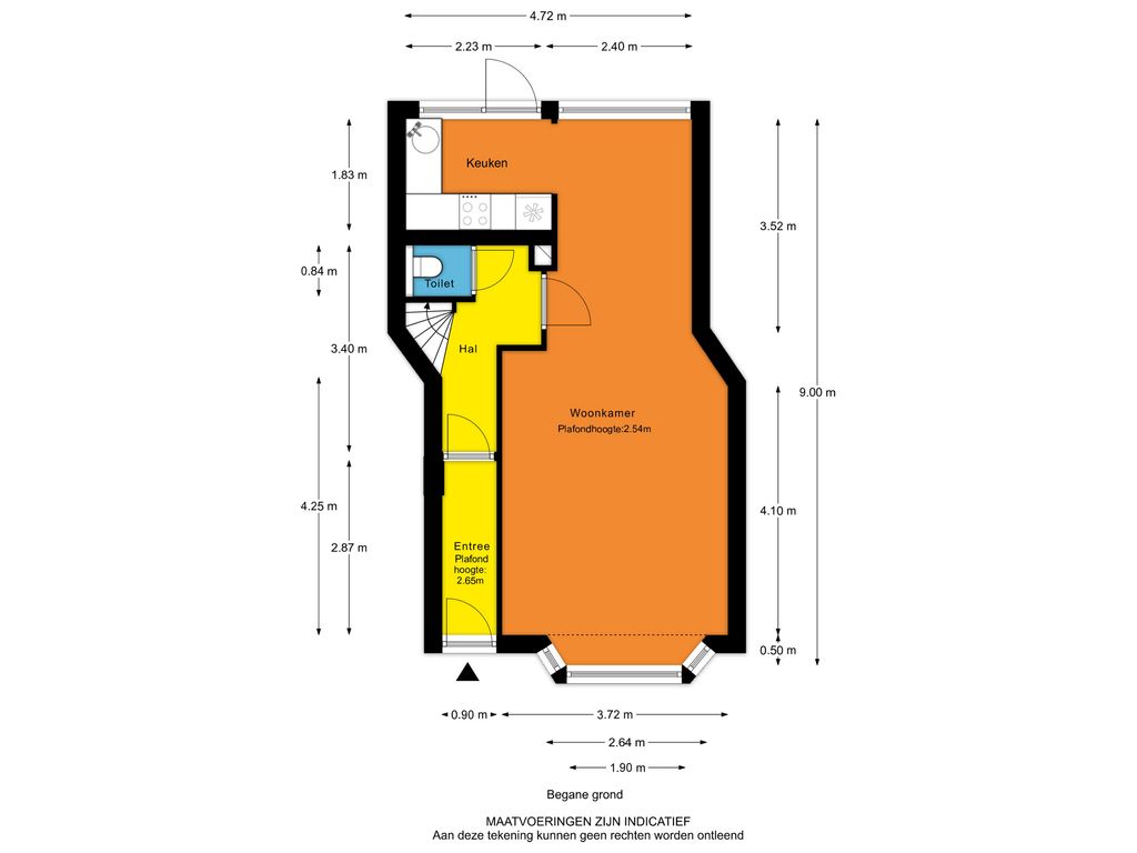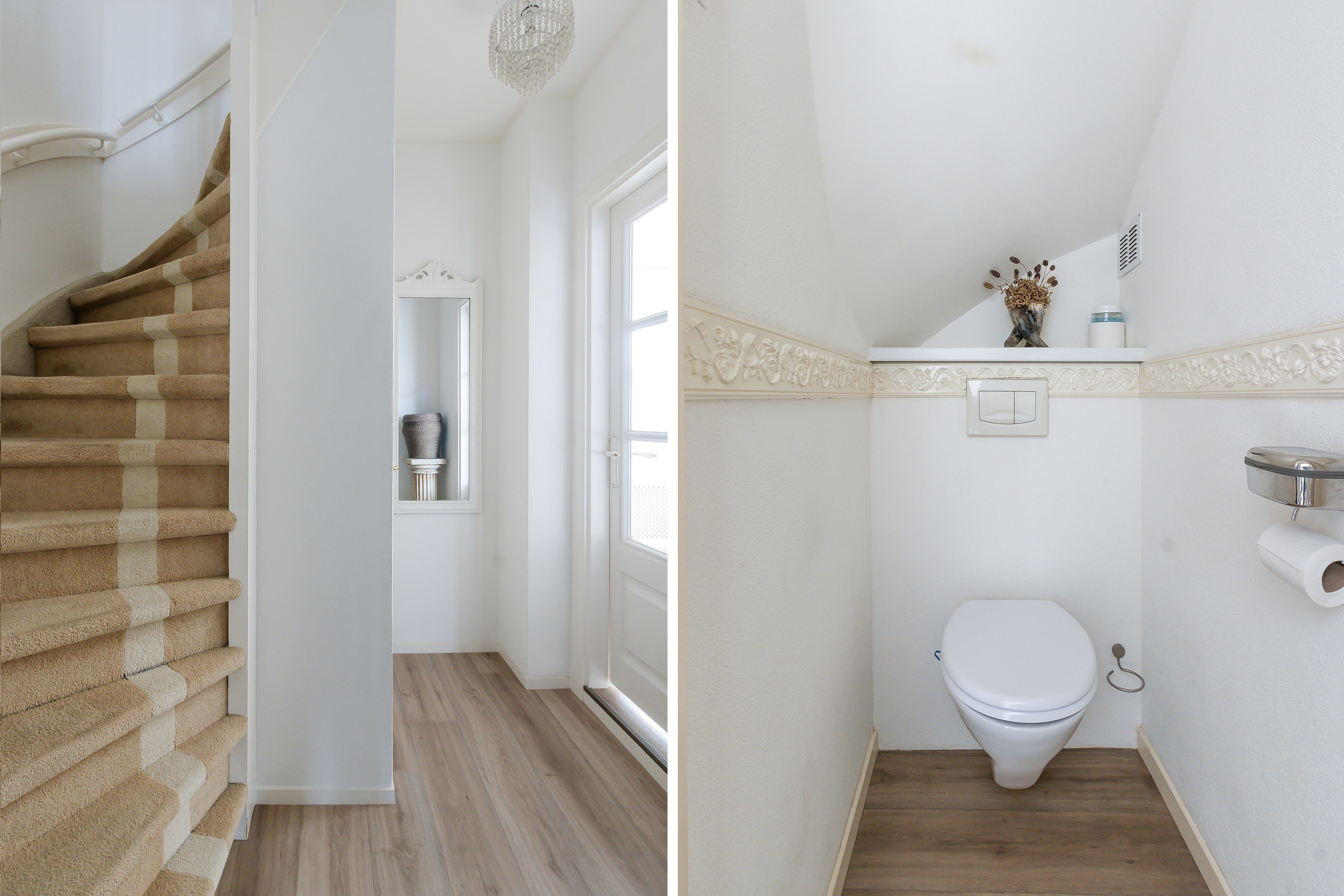 - Entree/hal met toegang tot de meterkast, toilet, woonkamer en trapopgang naar eerste verdieping;