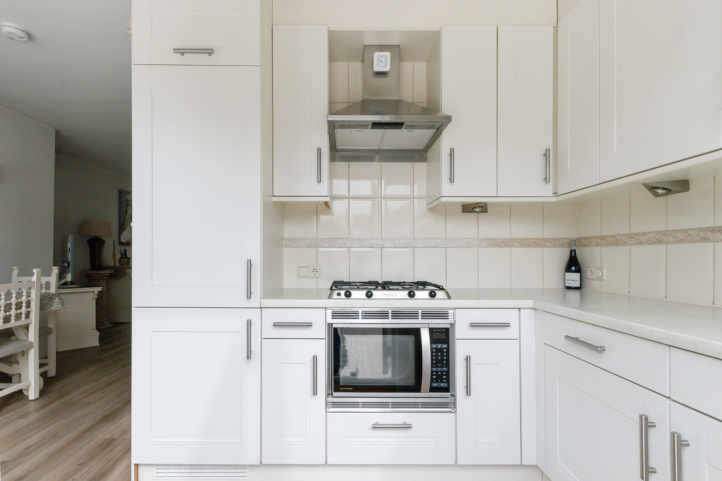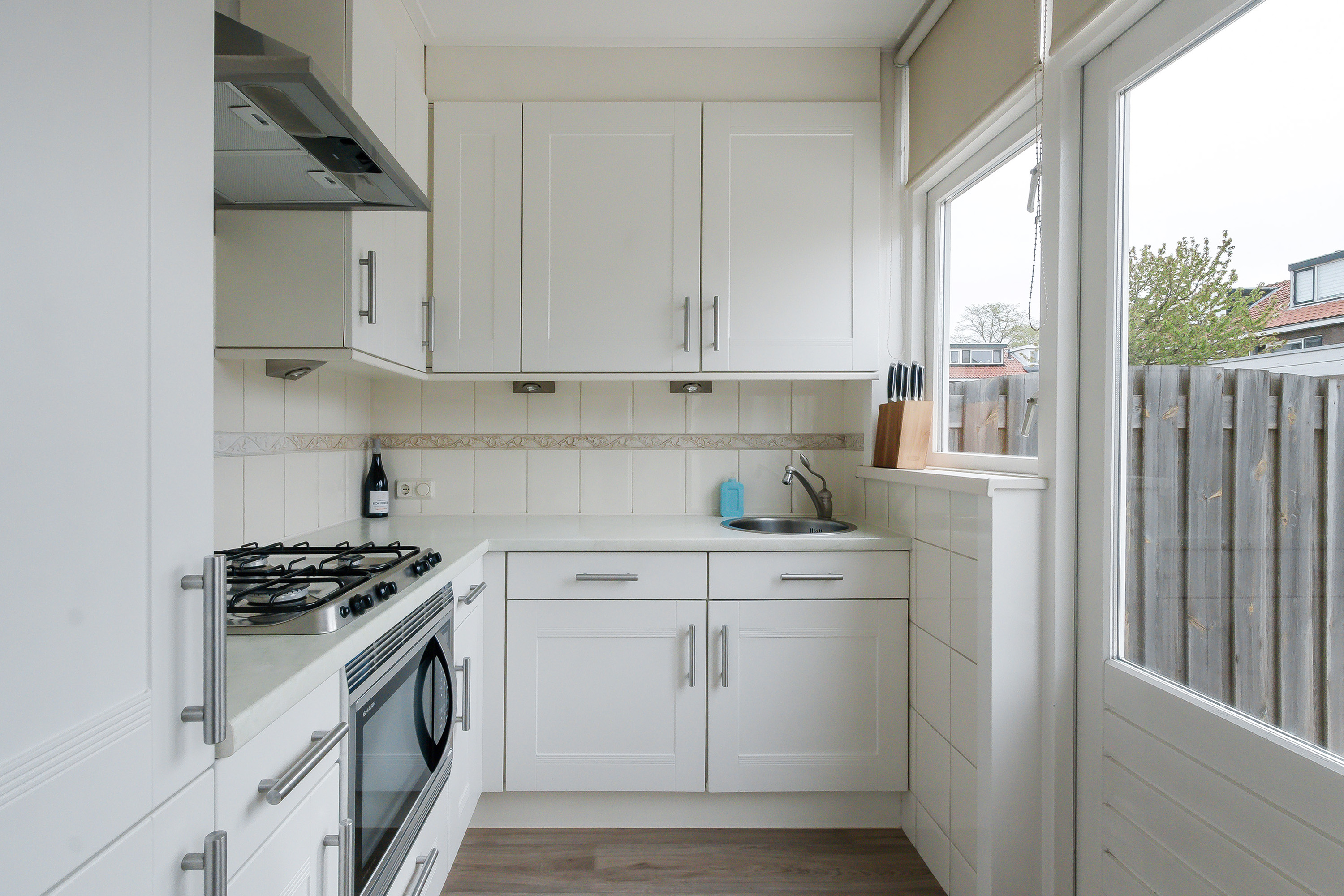 - Halfopen keuken in hoekopstelling met o.a. combioven (Etna), koelvriescombinatie (Etna), 4 pits gastoestel (Ariston), afzuigkap (Ikea) en toegang tot tuin.