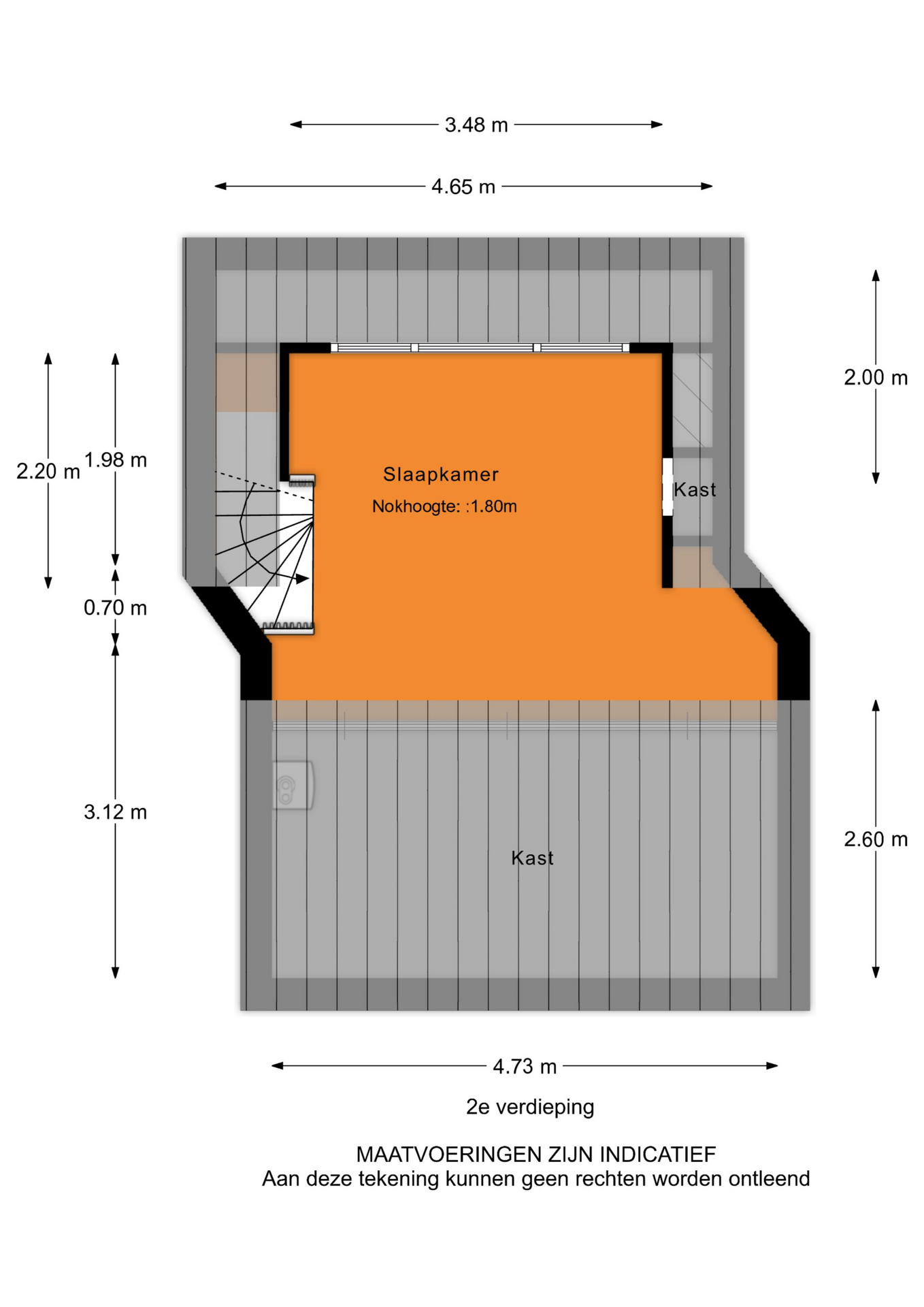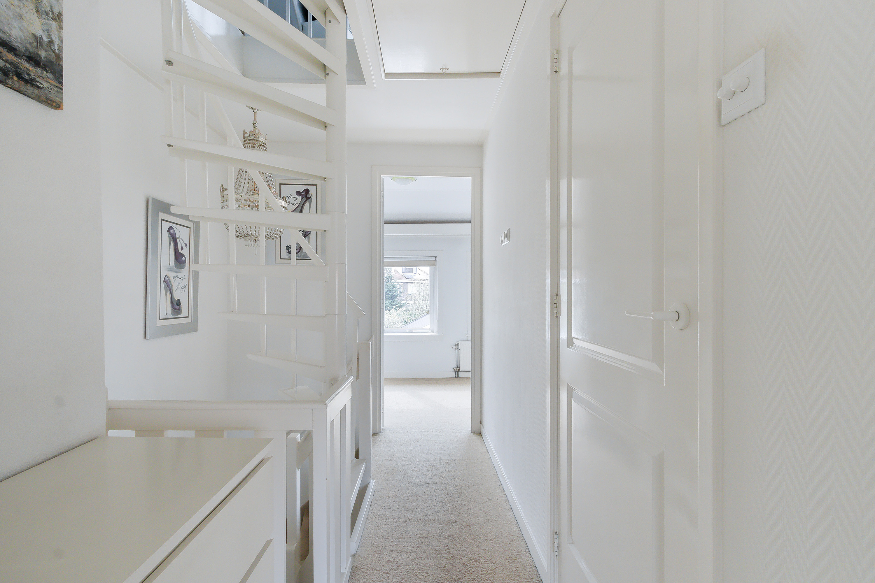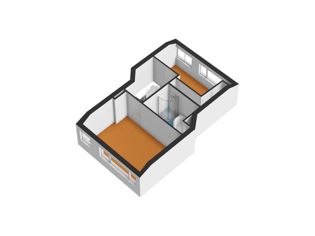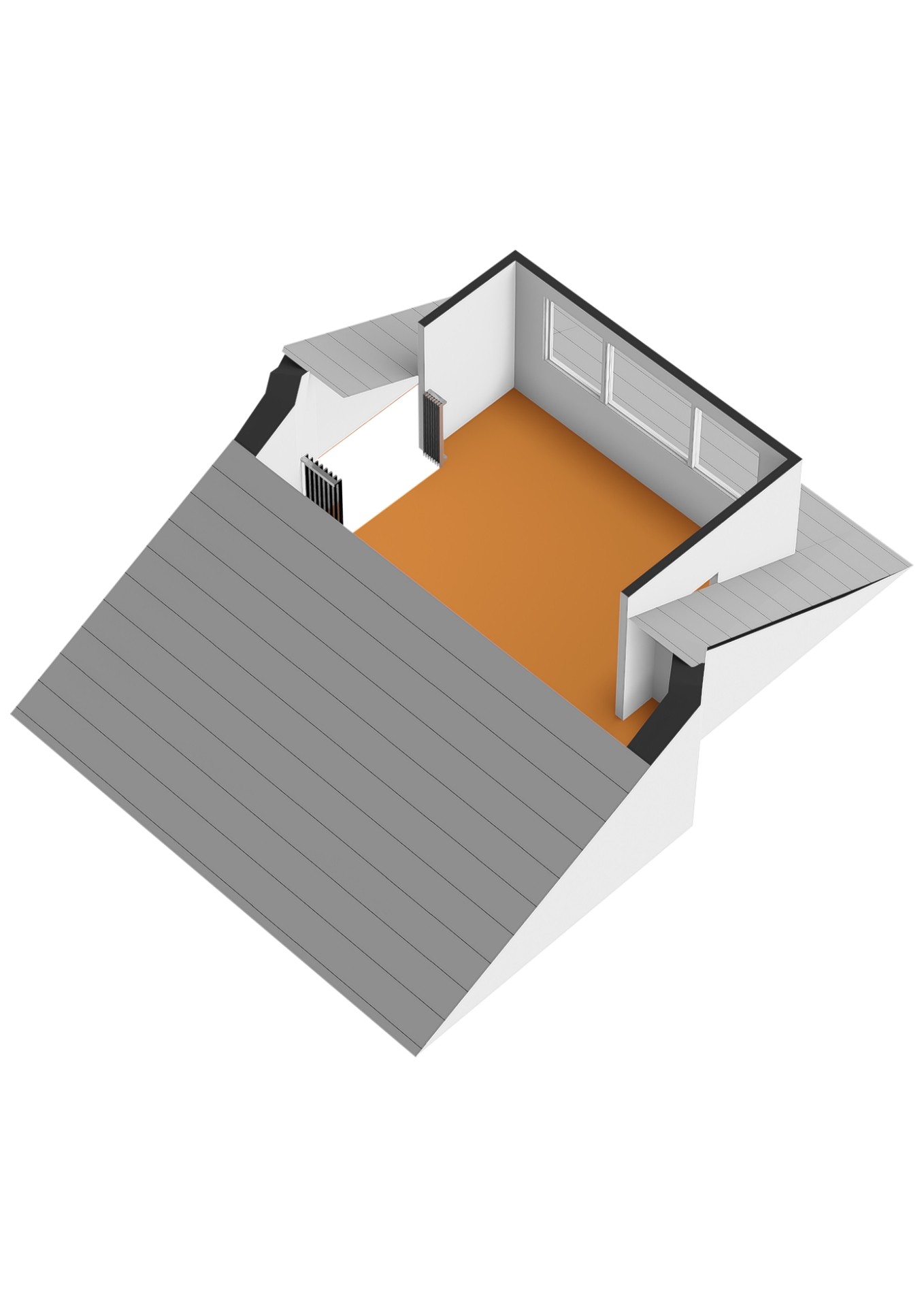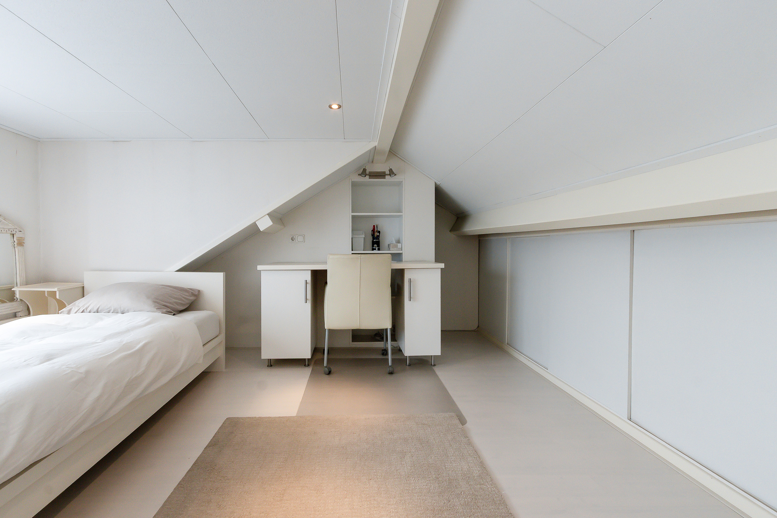 - Slaapkamer 3 (ca. 4.10 x 3.00 m.), over de gehele verdieping. Voorzien van dakkapel, knieschotten en de opstelplaats voor de CV-ketel (plafondhoogte ca. 1.80 m.).