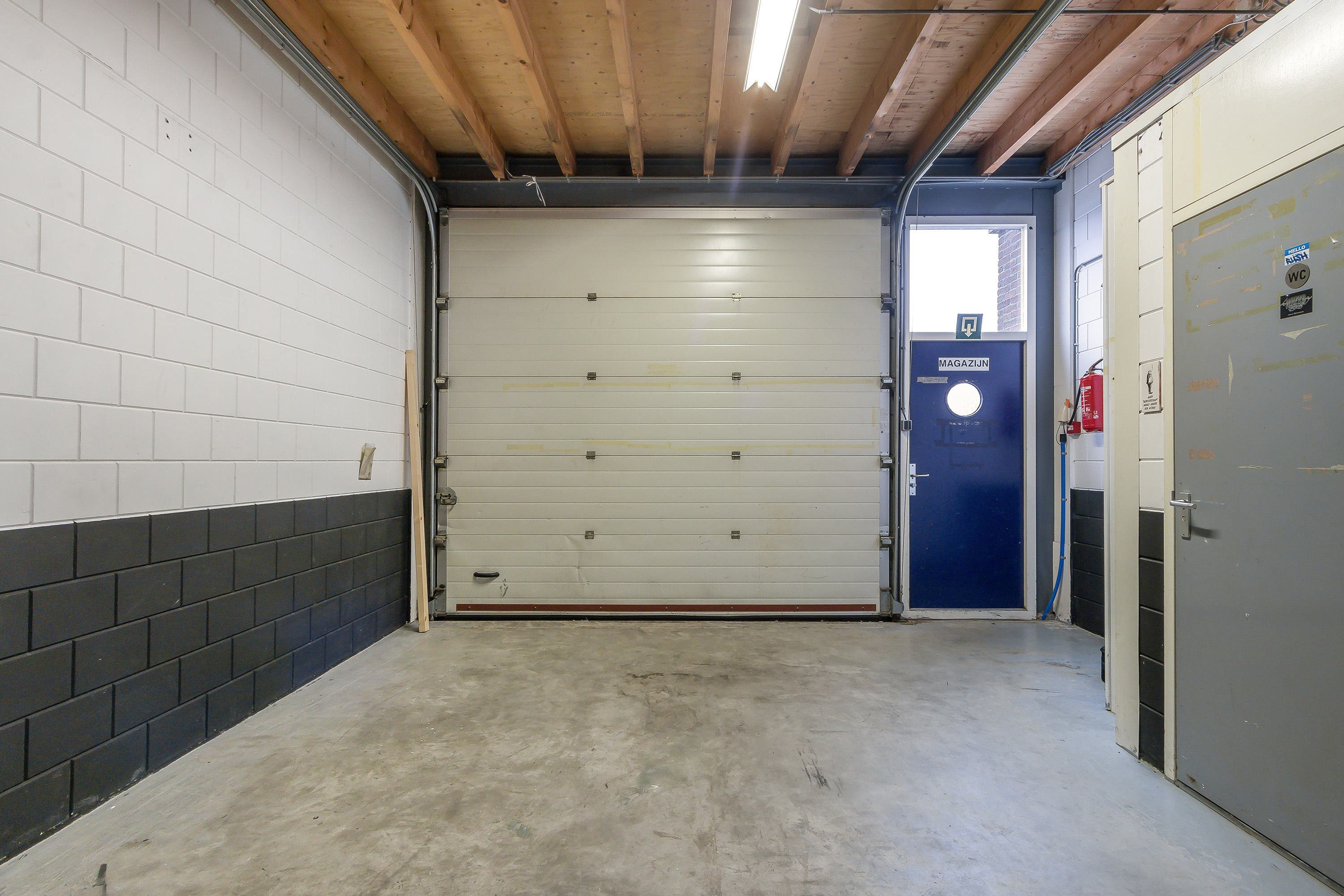 • Bedrijfsdeur, afm. 3.45 x 3.15 m. (bxh), geïsoleerd, verzwaard en hand bedienbaar;