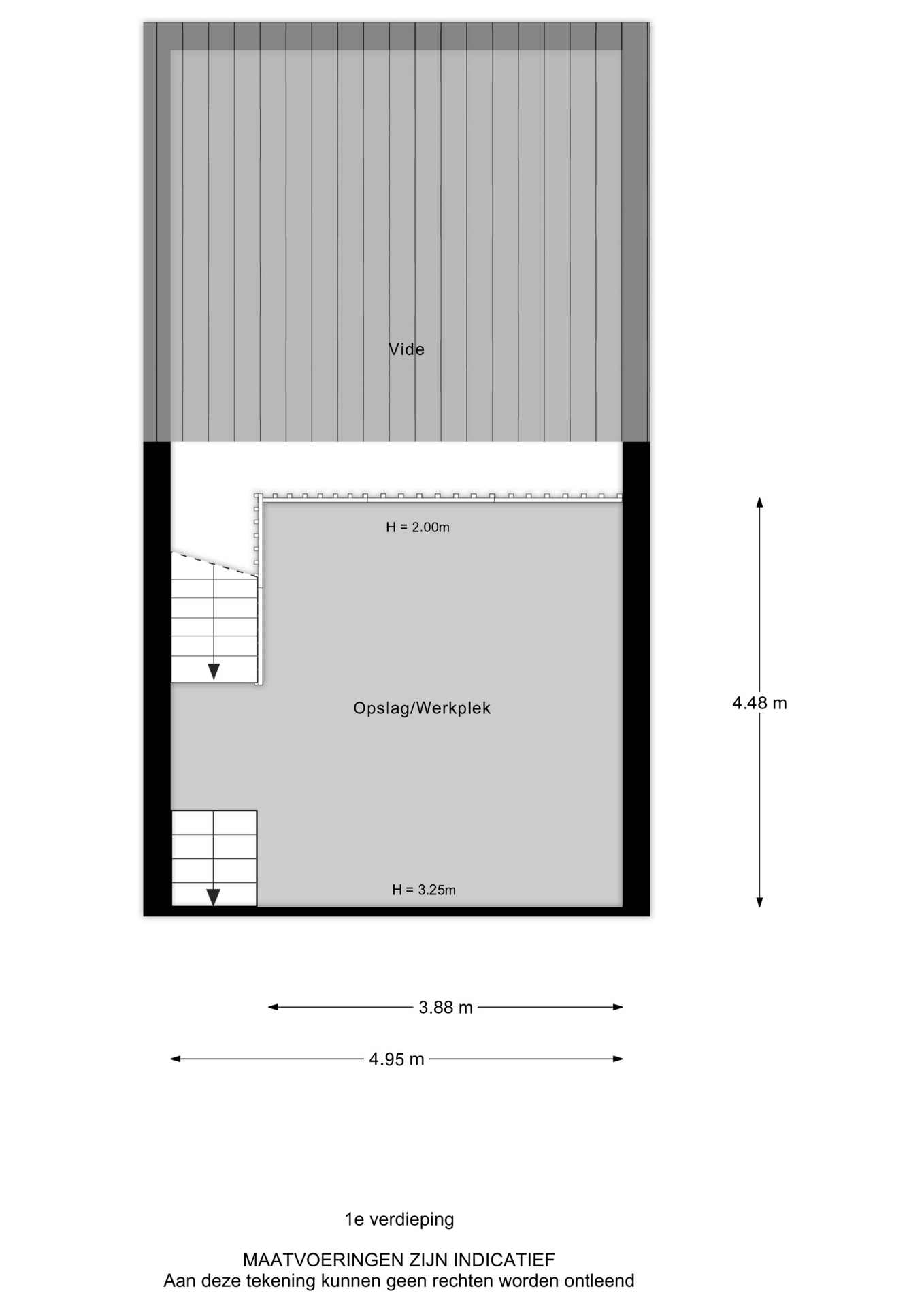 Insteekverdieping: ca. 23 m² (ca. 4.60 x 4.95 m.), opslagruimte.