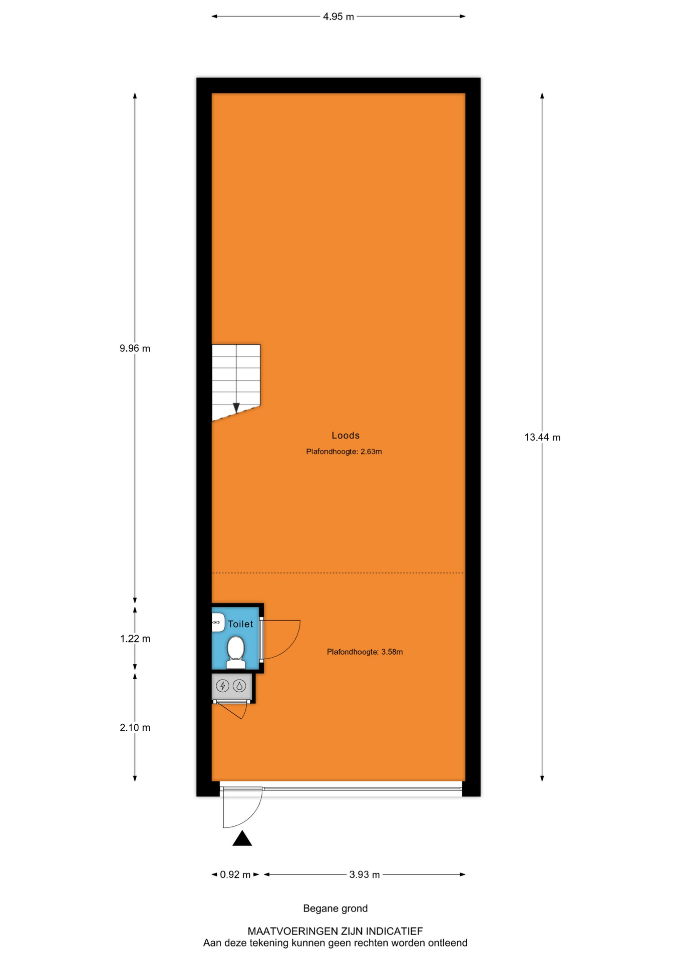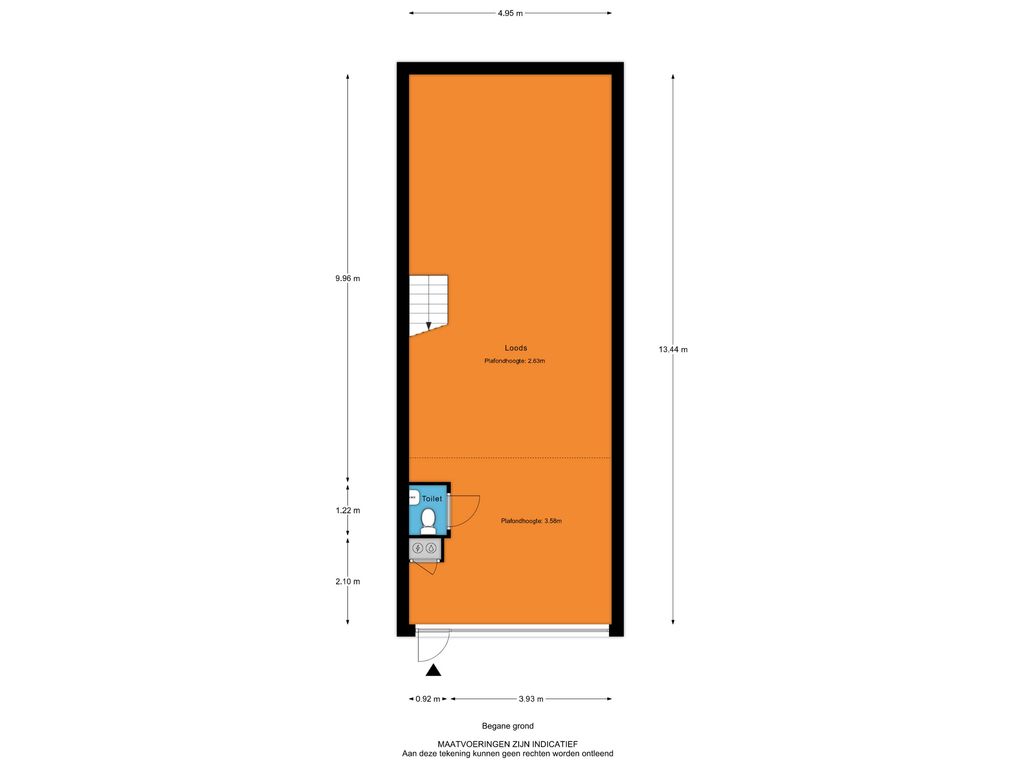 Begane grond : ca. 67 m² (ca. 13.45 x 4.95 m.), bedrijfsruimte.